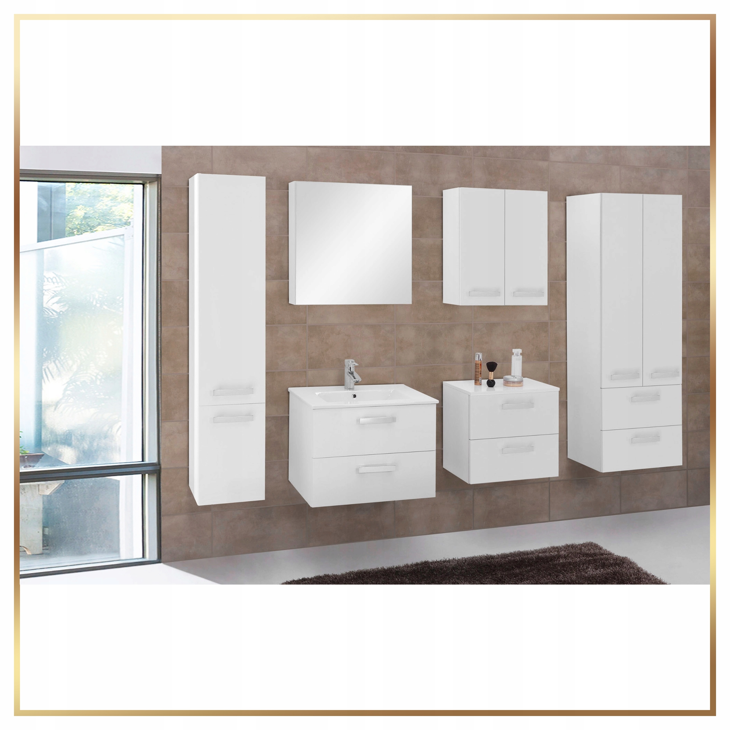 Biała Wisząca Szafka z Umywalką Ceramiczną 59 Bateria Sig Klik Klak Syfon