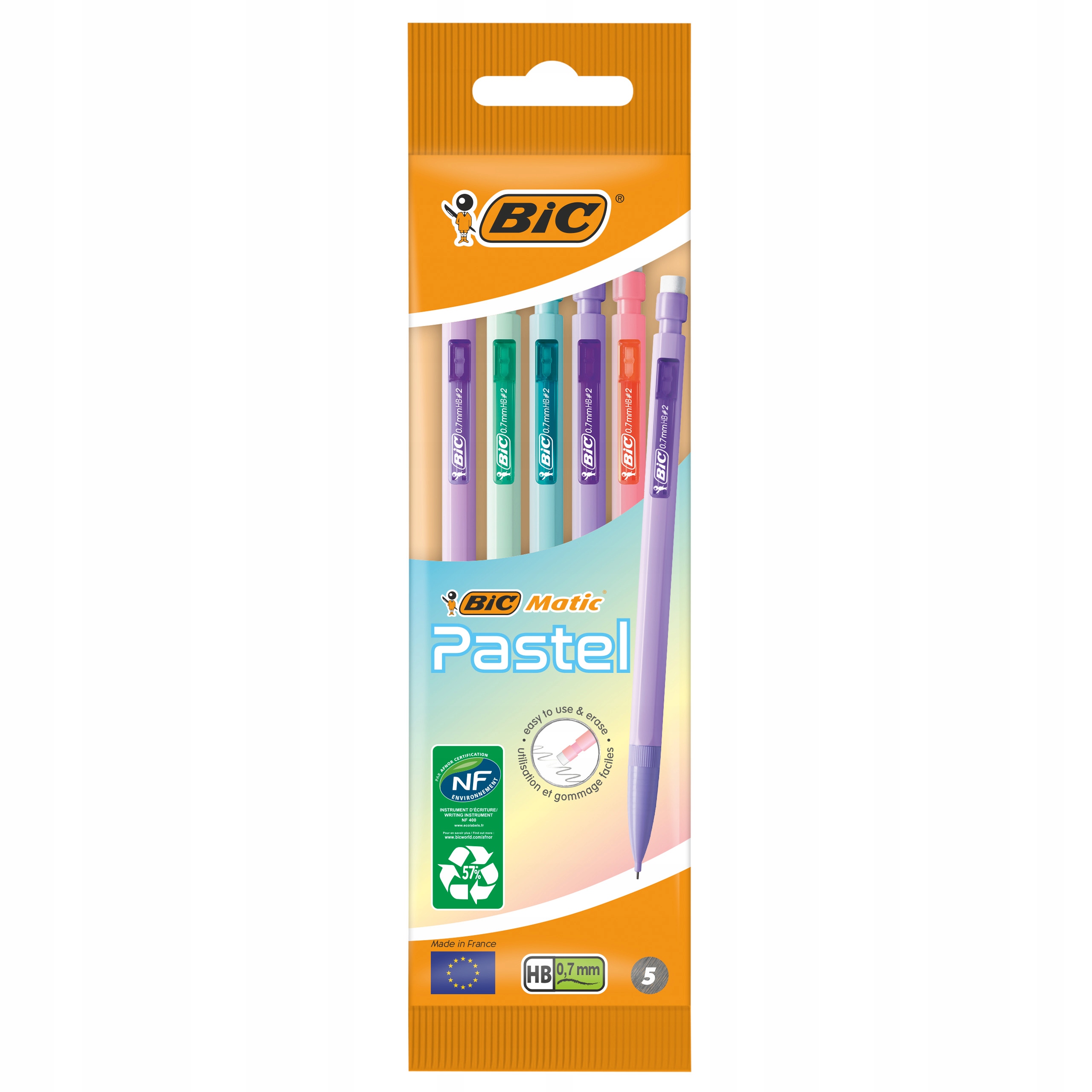 - Прочный, легкий, карандаш BIC Matic Pastel в веселой пастельной версии в 5 цветах: фиолетовом, розовом, синем, зеленом и сиреневом.< /li>