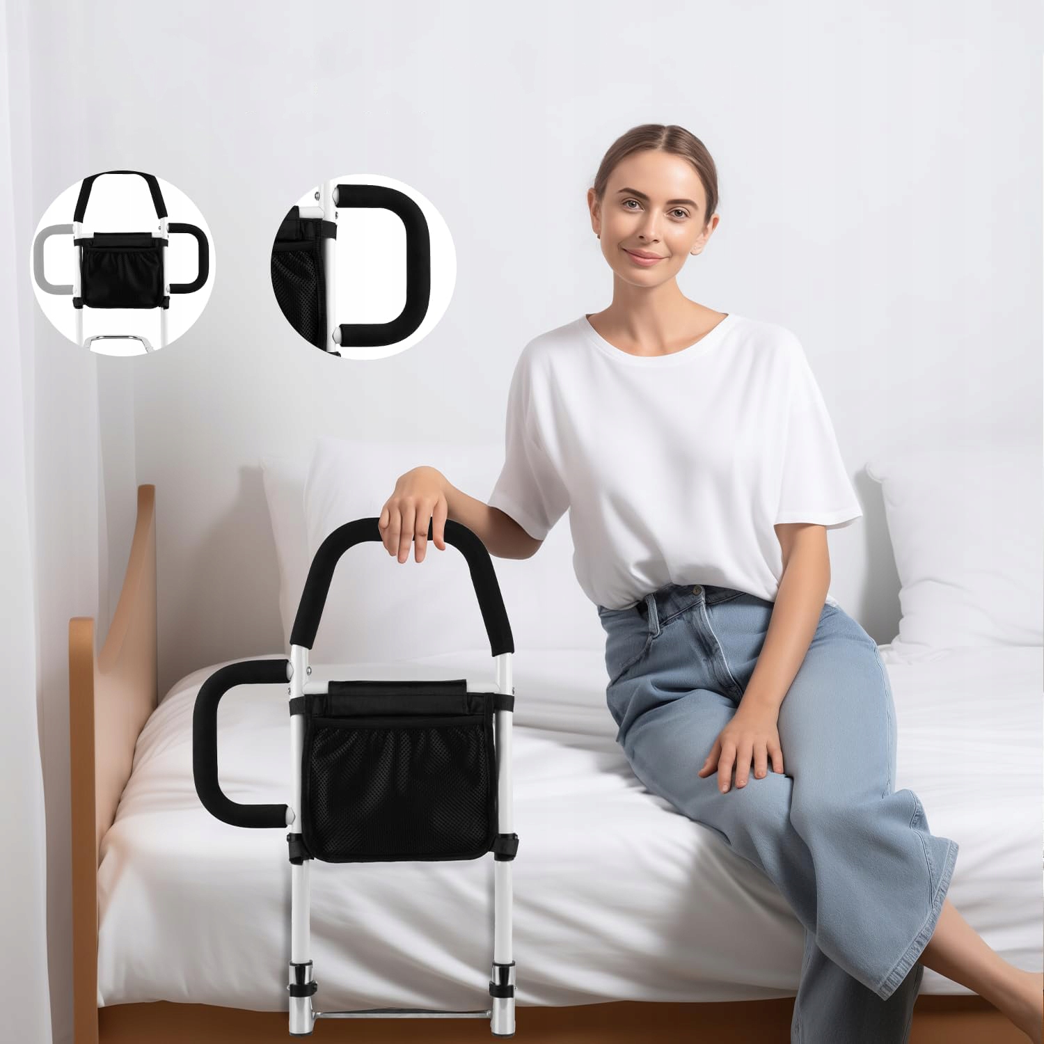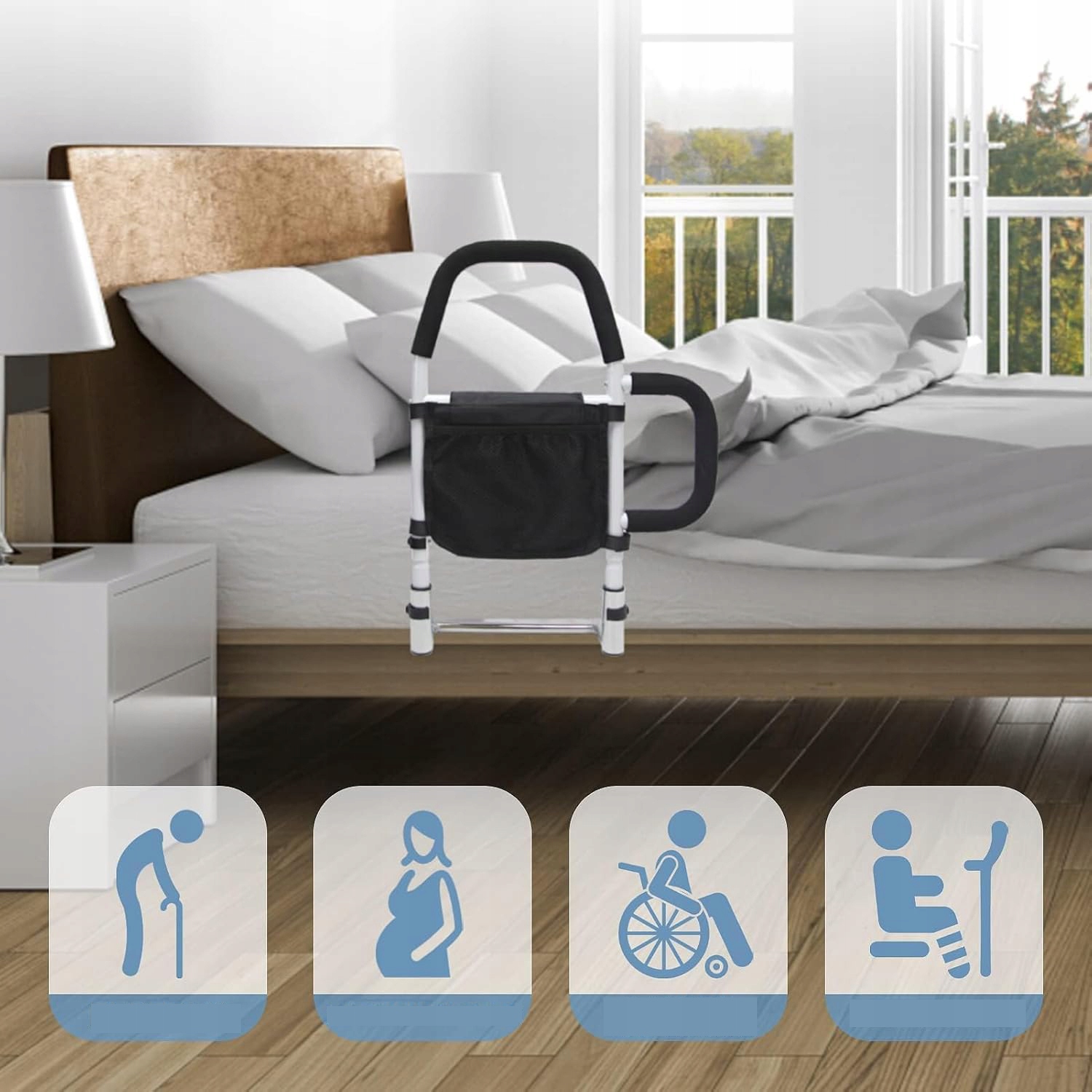 ✨✨【Нескользящие ручки】Этот барьер для кровати для пожилых людей обеспечивает безопасную и нескользящую поддержку для пожилых людей и беременных женщин при входе и выходе из кровати. Эргономичные ручки с противоскользящей пеной удобны и предотвращают появление царапин. Меньше усилий, больше безопасности и больше стабильности