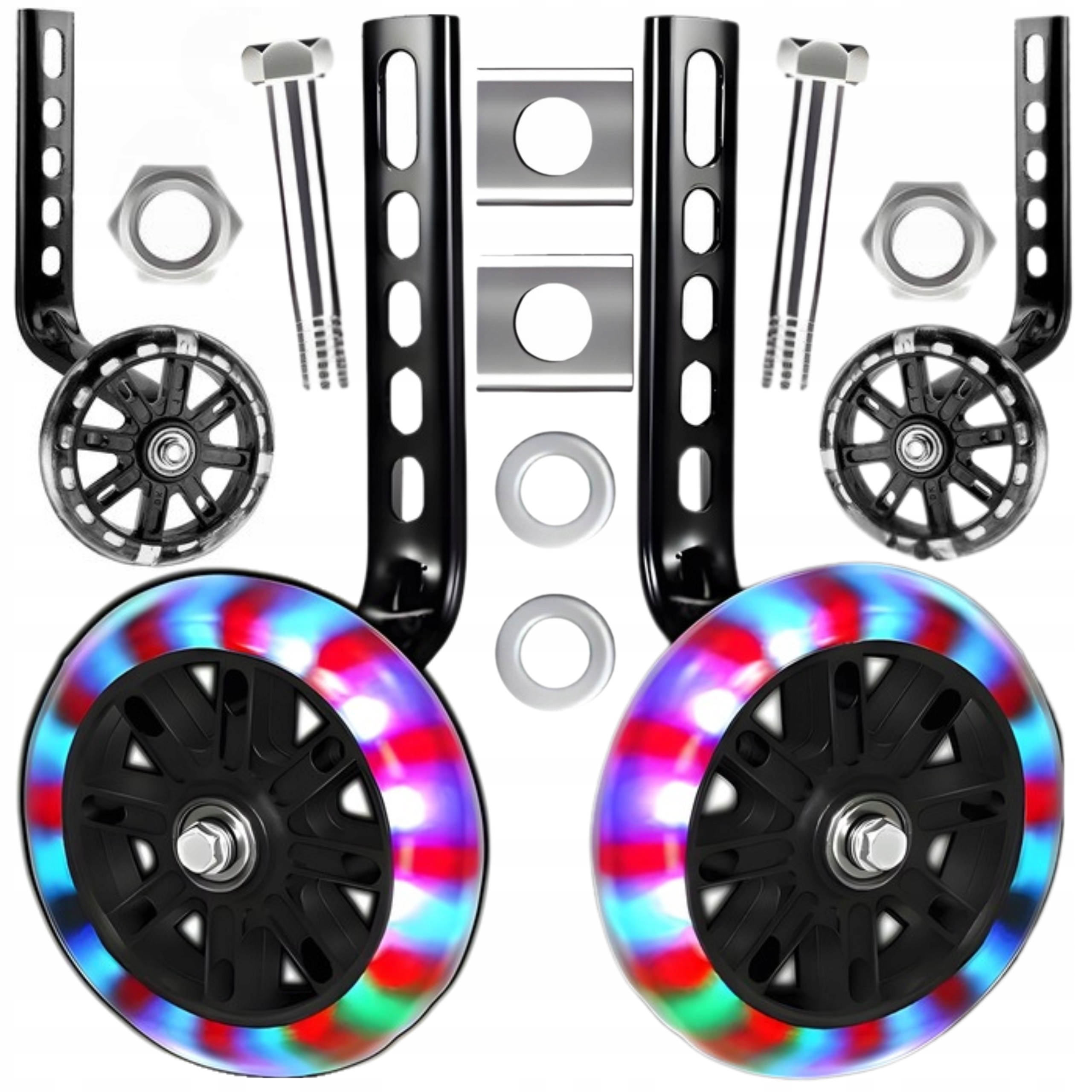 ✨ Безопасные и определенные уроки для езды на велосипеде! Наши светящиеся боковые колеса со светодиодами - это идеальная поддержка для вашего ребенка, учится ездить на велосипеде. Они соответствуют велосипедам с колесами от 12 до 20 дюймов, и их прочная конструкция обеспечивает стабильность и безопасность . Впечатляющая светодиодная подсветка не только добавляет привлекательность, но и повышает видимость на дороге.