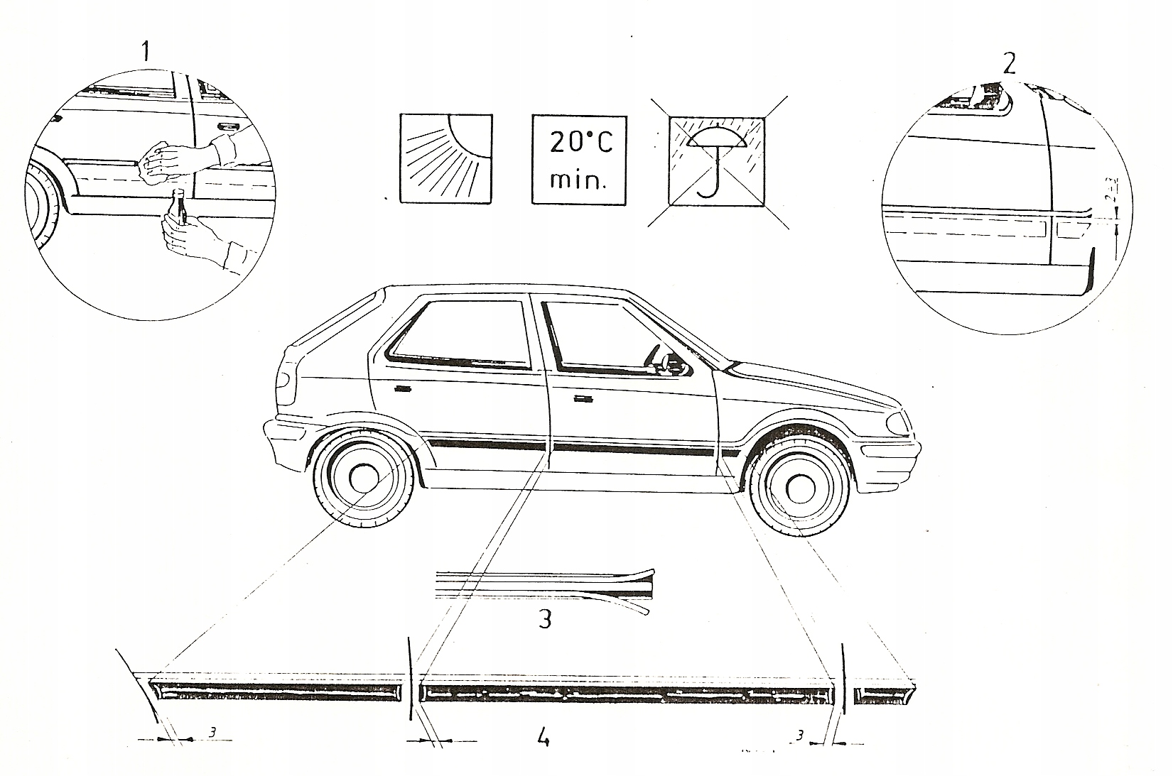 (4 штуки, по 2 полоски на обе стороны автомобиля).