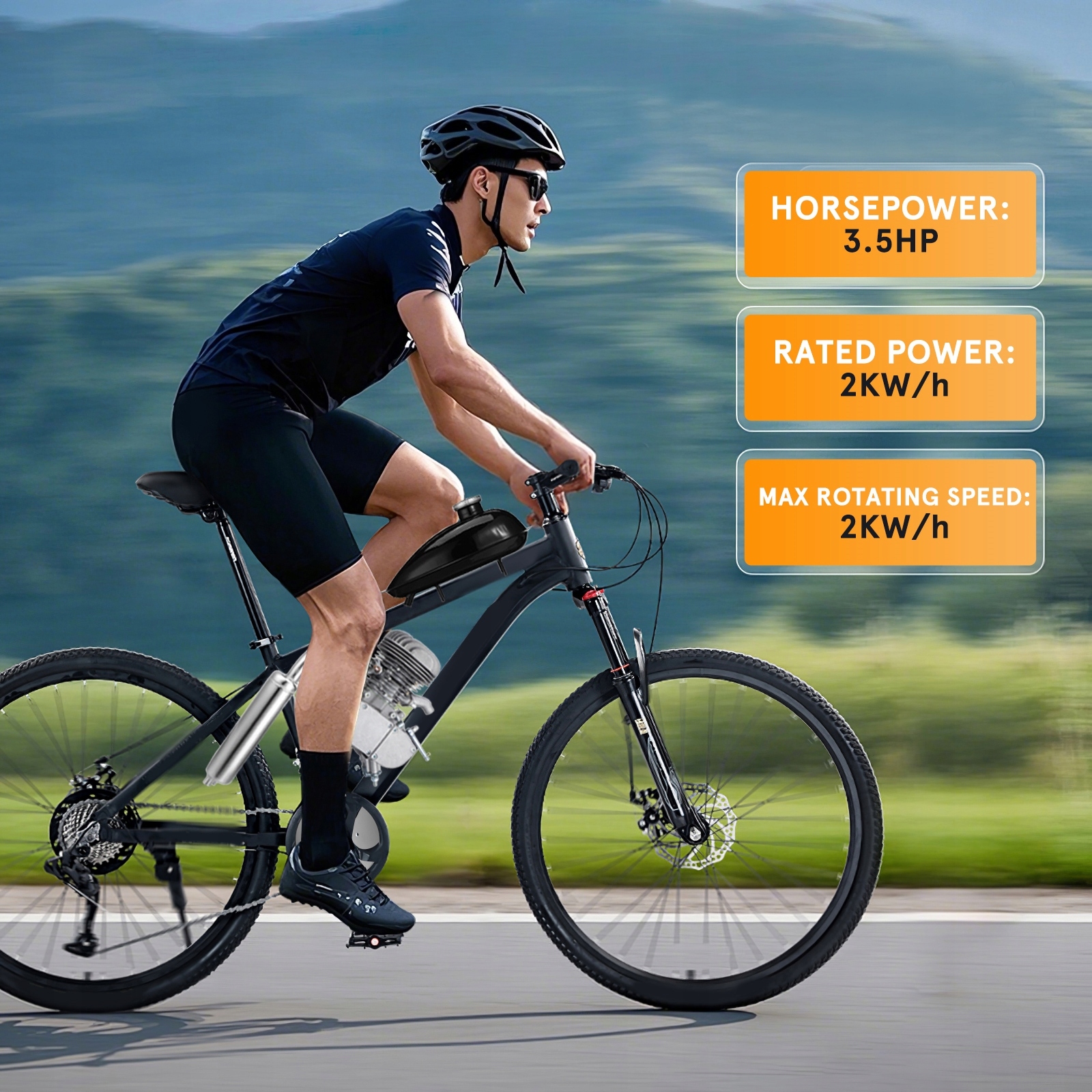 - Объем двигателя: 100 куб.см (оценочный показатель 3,2), Обеспечивает достаточную мощность для езды на велосипеде.