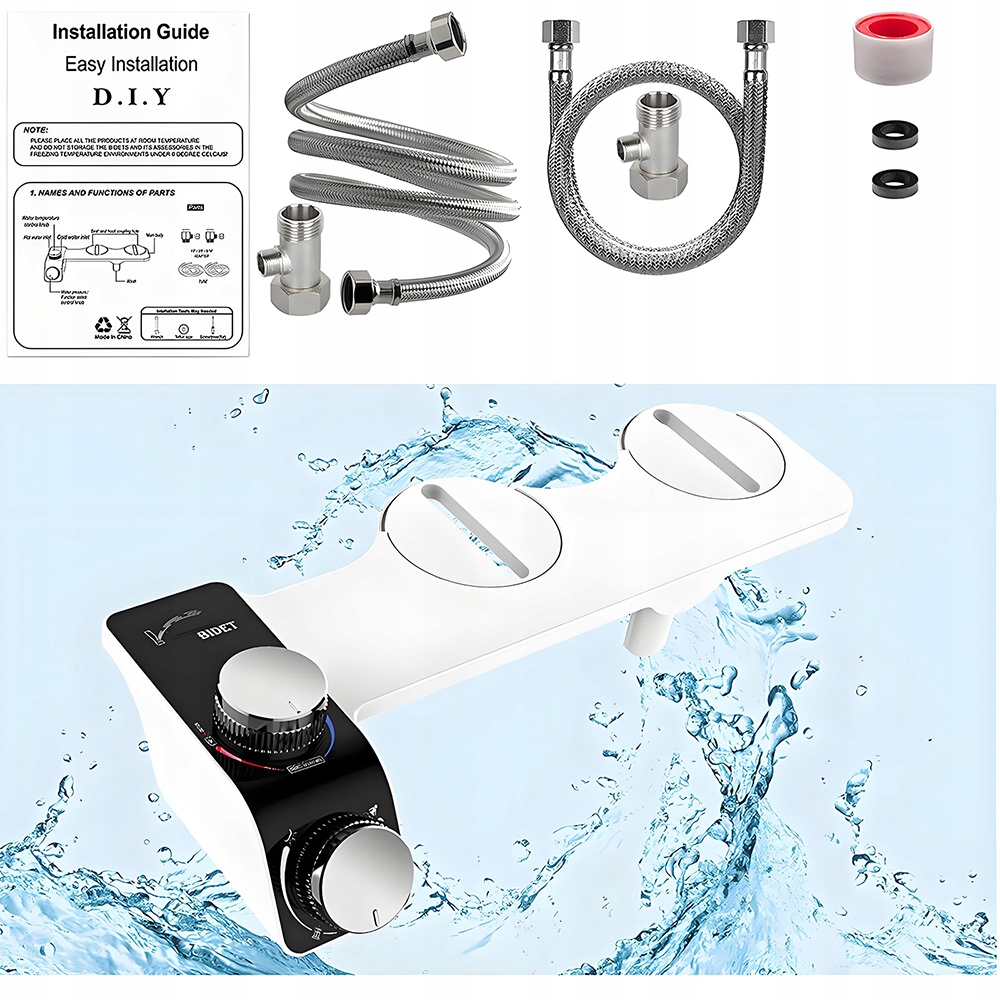 ✅【Конструкция для горячей и холодной воды】 Наша насадка для унитаза-биде поставляется с двумя шлангами: 2-метровым полиуретановым шлангом для горячей воды и 0,7-метровым шлангом в стальной оплетке для холодной воды. Ручка регулировки температуры позволяет выбирать горячую или холодную воду, что делает биде подходящим для любого времени года и обеспечивая комфорт.