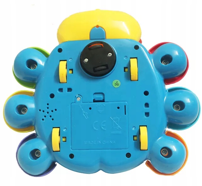 Наш интерактивный образовательный продукт с мелодиями и светом имеет на каждой из кнопок с отпечатками других животных ноги. После нажатия на каждую из них воспроизводится название цвета и животного и его звук на английском языке вместе с музыкой. Дополнительным преимуществом изделия является то, что после нажатия соответствующей кнопки черепаха начинает убегать в ритм мелодии. Он имеет встроенный датчик, который позволяет ему развернуться в другую сторону, как только он натолкнется на препятствие.