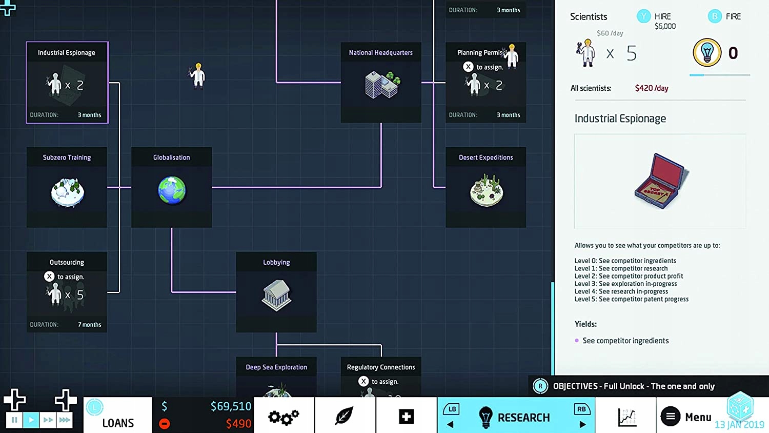 Мы начинаем свою карьеру скромно, с нескольких ржавых машин, с помощью которых мы будем разрабатывать лекарства, помогающие при легких недугах. Затем мы будем инвестировать заработанные деньги в лучшее и лучшее оборудование и персонал, что позволит нам открывать новые активные ингредиенты и революционные технологии, которые в конечном итоге приведут к разработке революционных лекарств. Конечно, все это развитие должно быть устойчивым, чтобы доходы и расходы были правильно сбалансированы.