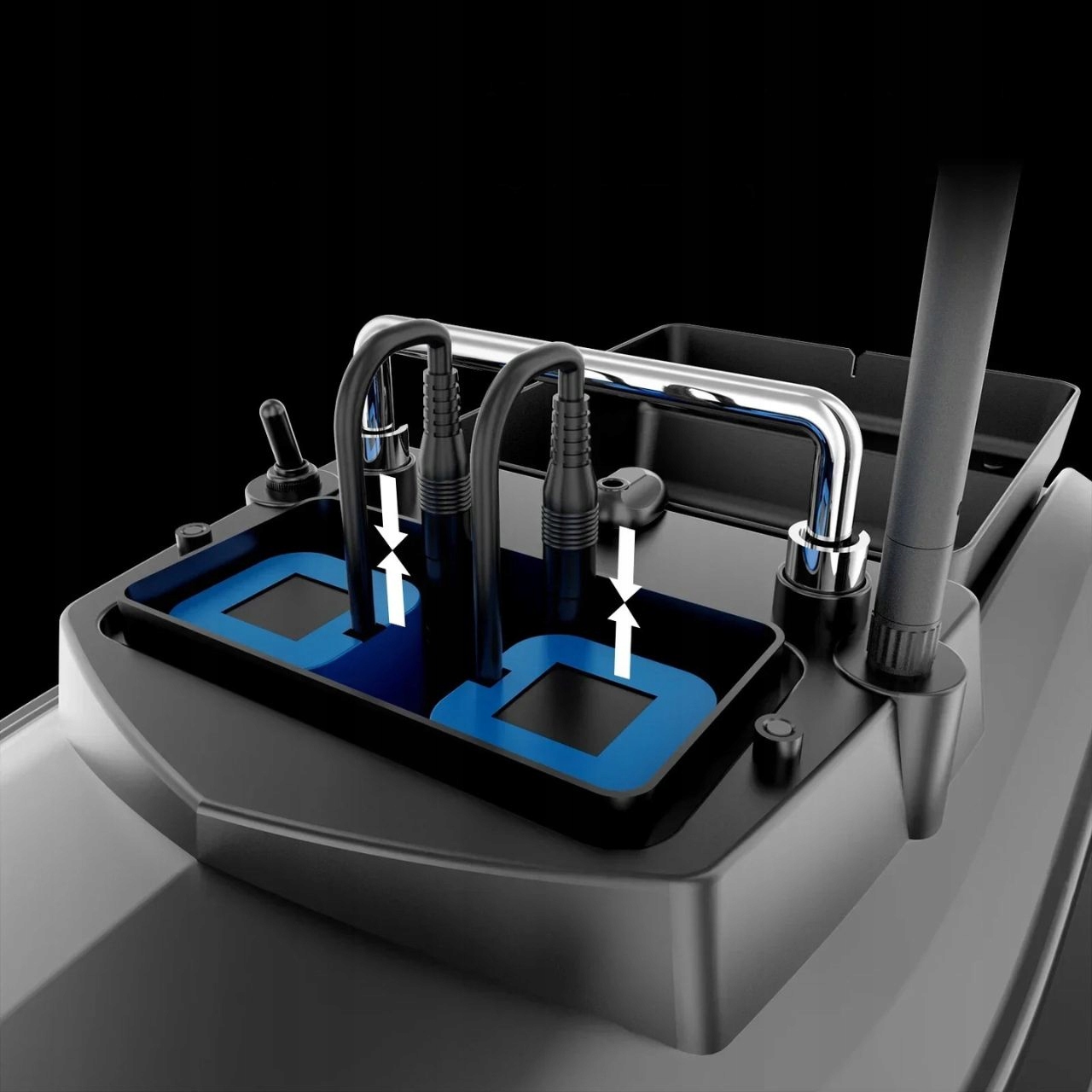 Система двойного привода обеспечивает быстрое и стабильное движение на воде. Благодаря улучшенному винту с тремя спатулами вы можете рассчитывать на максимальную производительность с минимальным шумом, что позволяет избежать забивания рыбы.