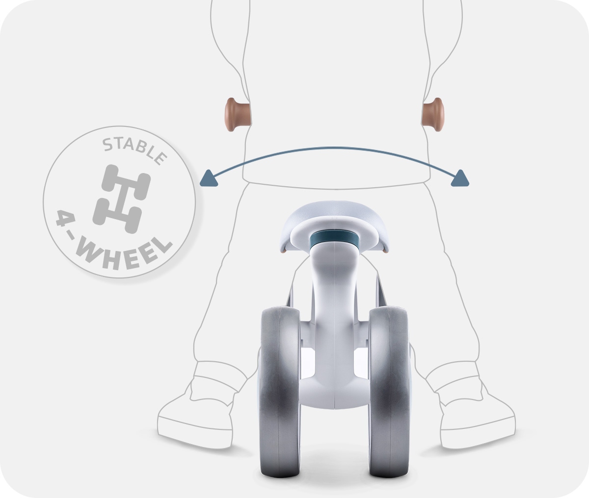 Cariboo Team оснащена четырьмя широко разнесенными колесами, которые обеспечивают ребенку максимальную устойчивость и тем самым облегчают обучение езде. Первые шаги на велосипеде могут оказаться настоящим испытанием для малыша. Устойчивая четырехколесная конструкция дает ребенку ощущение большего комфорта и безопасности и, следовательно, большей уверенности в себе. Благодаря этому научиться ездить на велосипеде Cariboo Team можно быстро и без стресса.