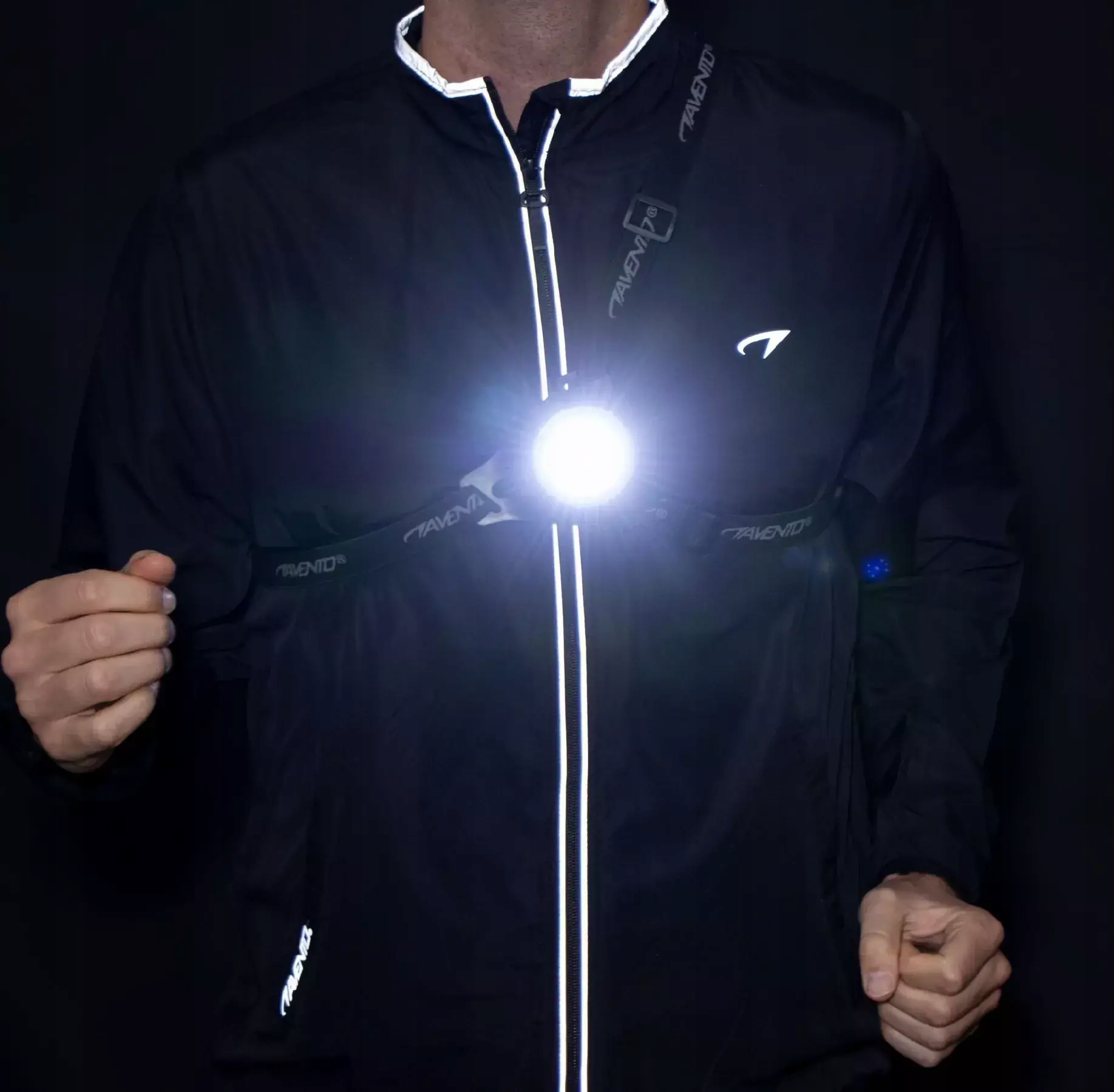 Огни можно включать и выключать вручную, они могут мигать или гореть постоянно. Благодаря легко регулируемым эластичным ремням подвеску Avento LED легко надевать.