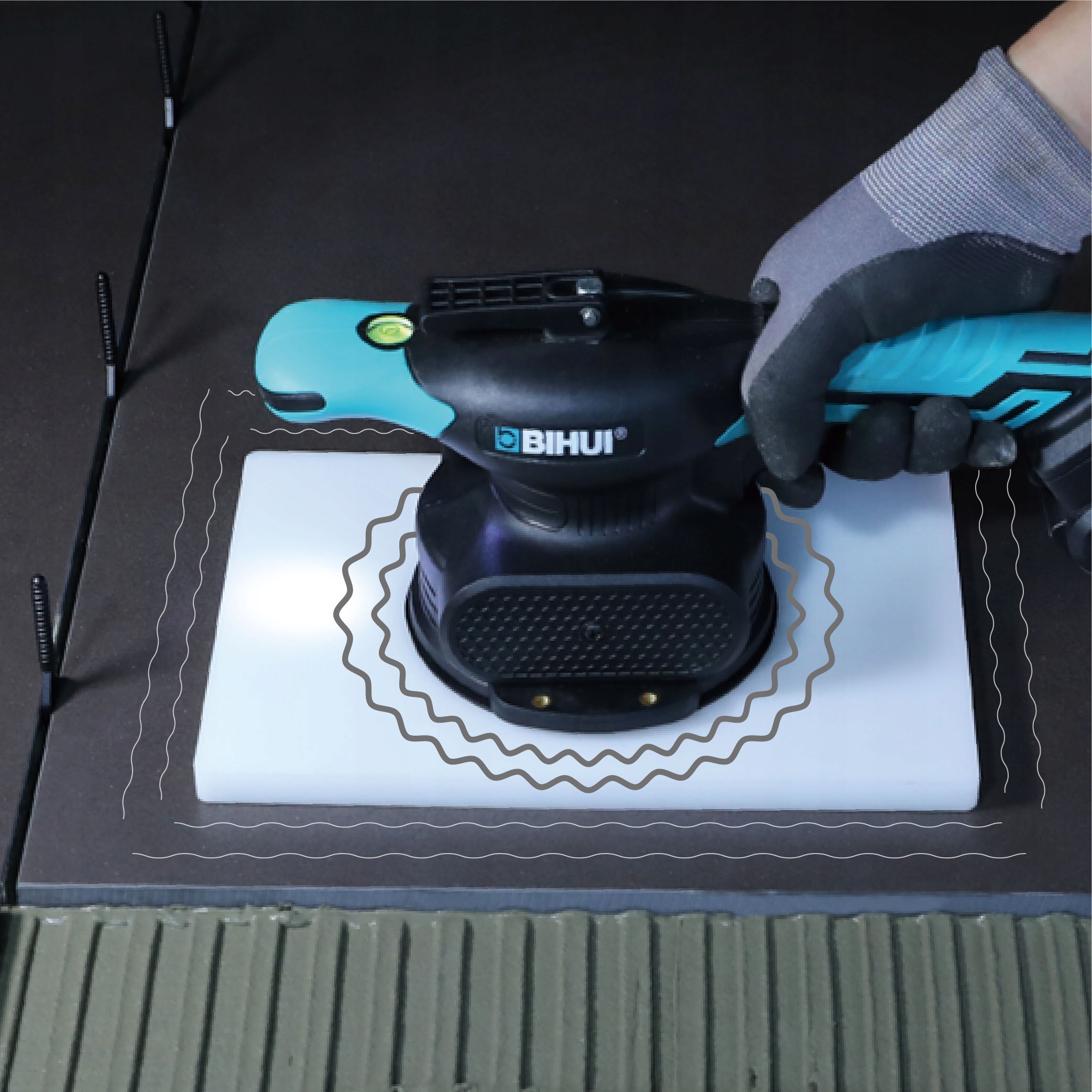 Питание от литиевой батареи напряжением 16,8 В позволяет использовать его для установки внутри и снаружи помещений. Он заменяет традиционную ручную работу и помогает избежать проблем из-за неправильного распределения клея под плиткой и плитами большого размера.