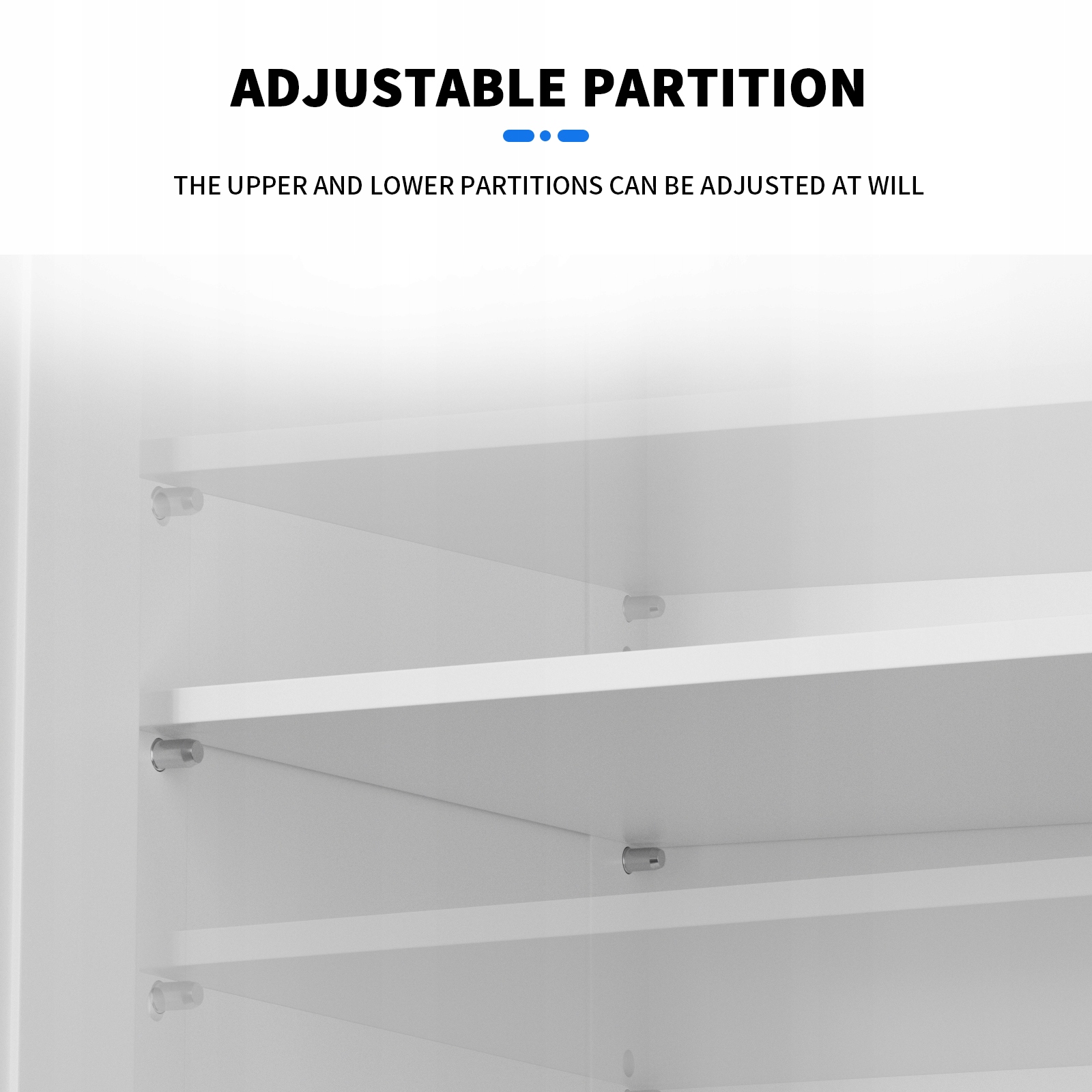 【Универсальный и практичный】 - U-образная конструкция отверстия идеально подходит под различные раковины, обеспечивает дополнительное место для хранения вещей в труднодоступных местах, большое пространство для хранения с 2 магнитными раздвижными дверцами позволяет хранить все виды принадлежностей для ванной комнаты, защита ванной комнаты от беспорядка. Он оснащен регулируемыми полками, поэтому вы можете регулировать высоту перегородки в соответствии с разными потребностями.