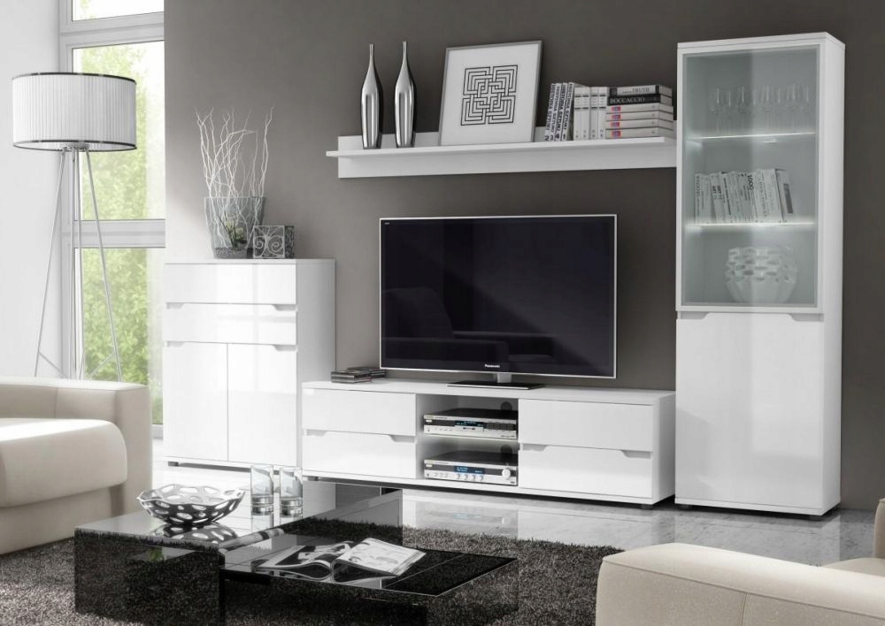 Из белой коллекции мебели, предназначенной для гостиной или гостиной. Коллекция состоит из элементов, которые идеально сочетаются как в виде настенного шкафа, так и в свободной композиции. Витрина изготовлена из высококачественного ламинированного картона с кромкой из АБС-пластика и фасадами из глянцевого МДФ. За стеклянной дверцей расположены две стеклянные полки.