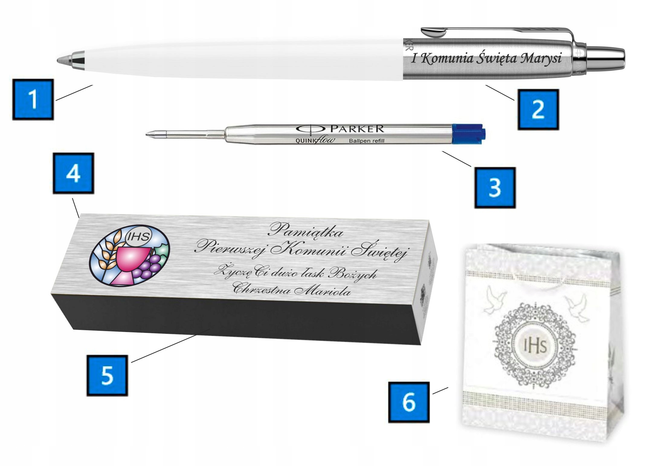 БІЛА КУЛЬКОВА РУЧКА PARKER JOTTER В ПОДАРУНОК З ГРАВІЮВАННЯМ НА ПЕРШЕ ПРИЧАСТЯ