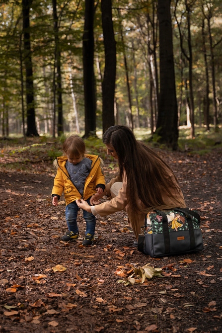 Eco -leather Bag идеально подходит не только для тележки. Он имеет много преимуществ, таких как: дно эко -листика, внутренние карманы, функциональные отсеки и грязь. Напротив, красочный хлопок с принтом заставляет сумку вписаться в современные коляски. Кроме того, сумка оснащена металлической фитингами, универсальными подвесными крючками на раме и практическим плечевым ремнем. Будет доступен в 5 дизайнах.