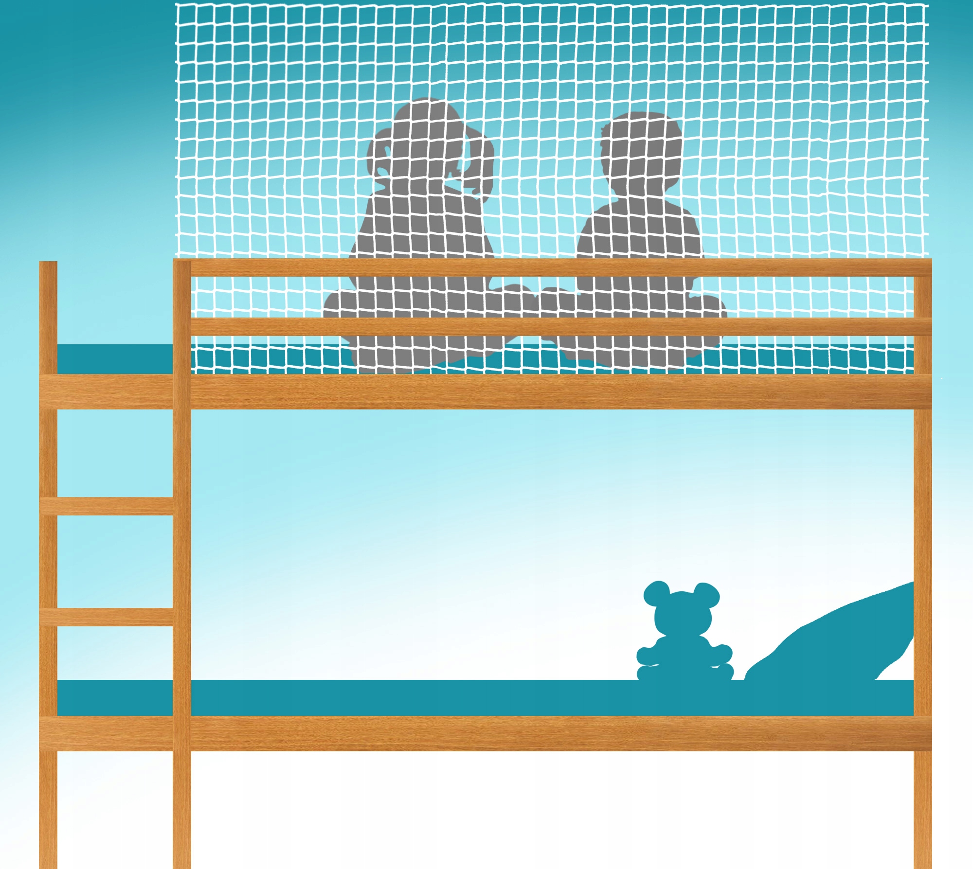 Предлагаемая нами сетка не позволяет ребенку протиснуться между перекладинами кровати. Значительно снижает вероятность выпадения или застревания во время лежания на кровати.