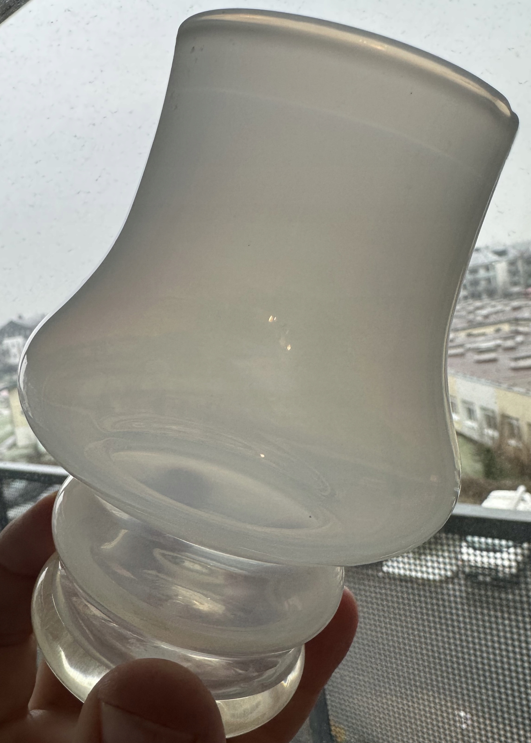Стеклянная ваза белого призрака из Тарновца, высота 12 см.