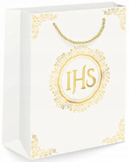 БІЛА СУМКА IHS ДЛЯ ДАРІВ СВЯТОГО ПРИЧАСТЯ 20 СМ