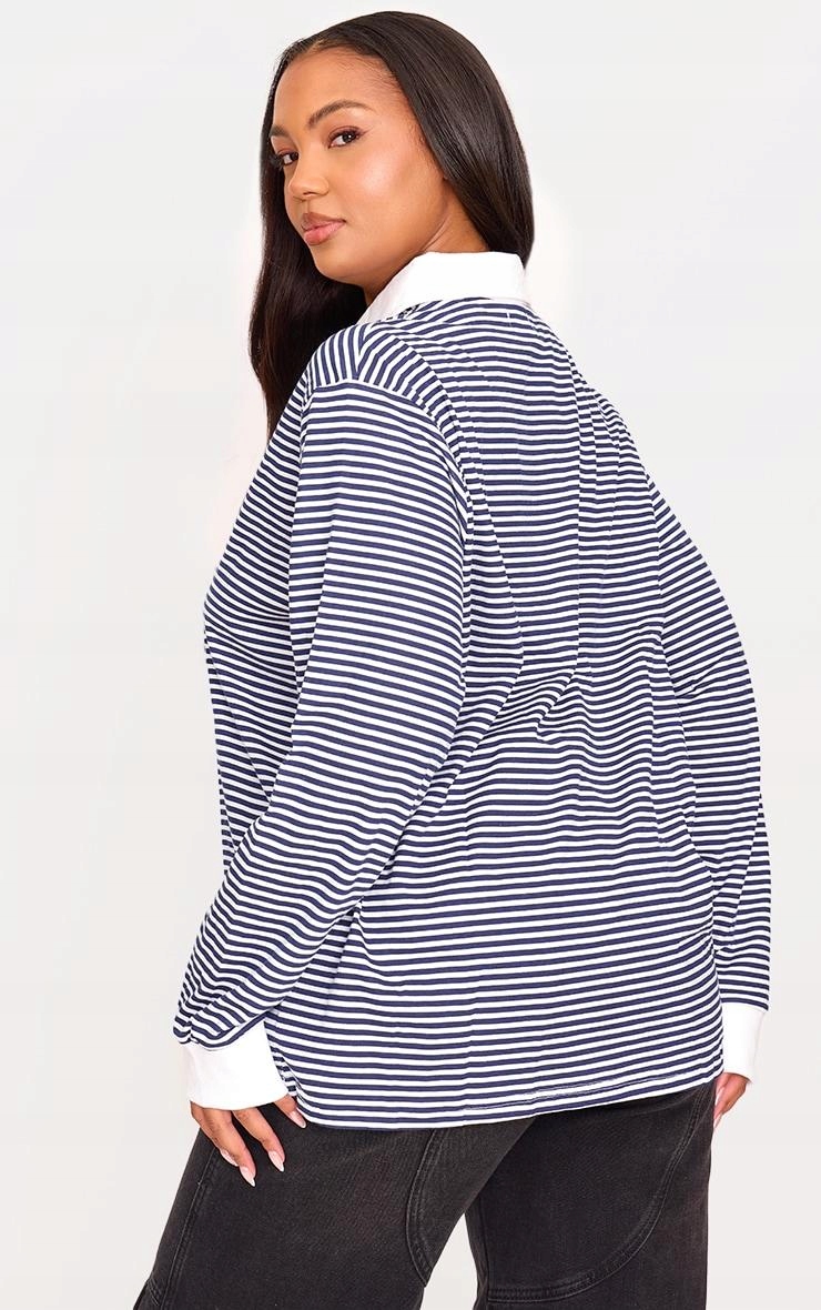БЕЛАЯ ФУТБОЛКА-ПОЛО В ПОЛОСКУ С ДЛИННЫМ РУКАВОМ PRETTYLITTLETHING 46