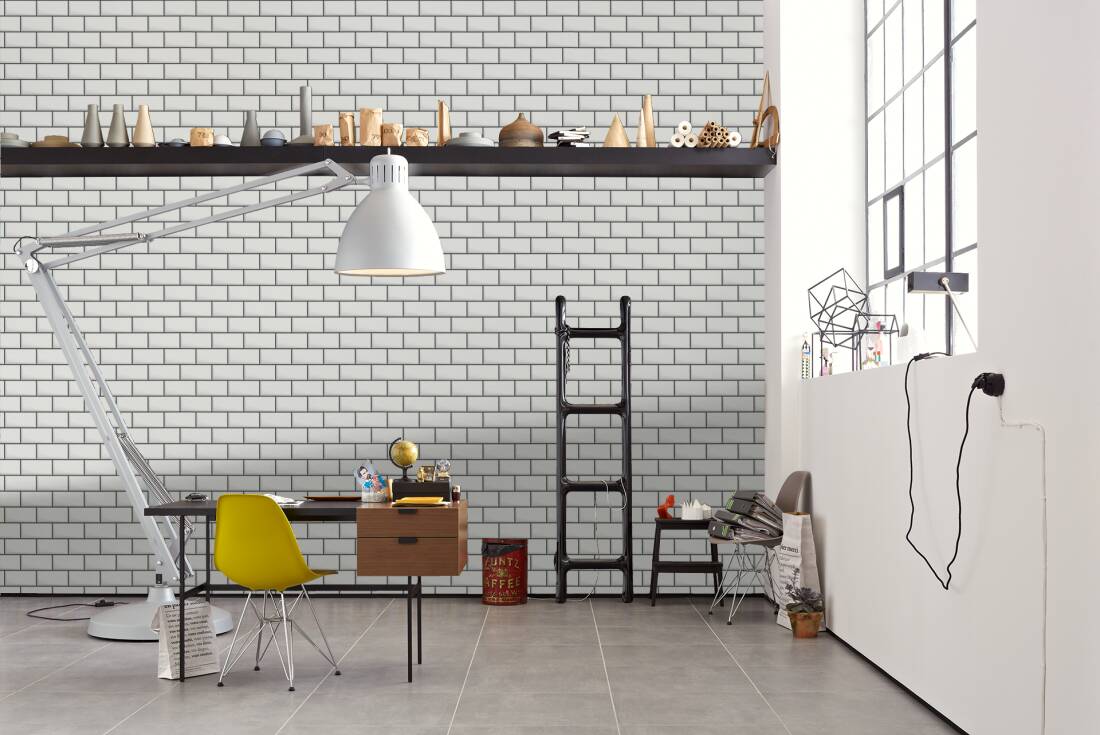 - Цвет: белая плитка, черная затирка