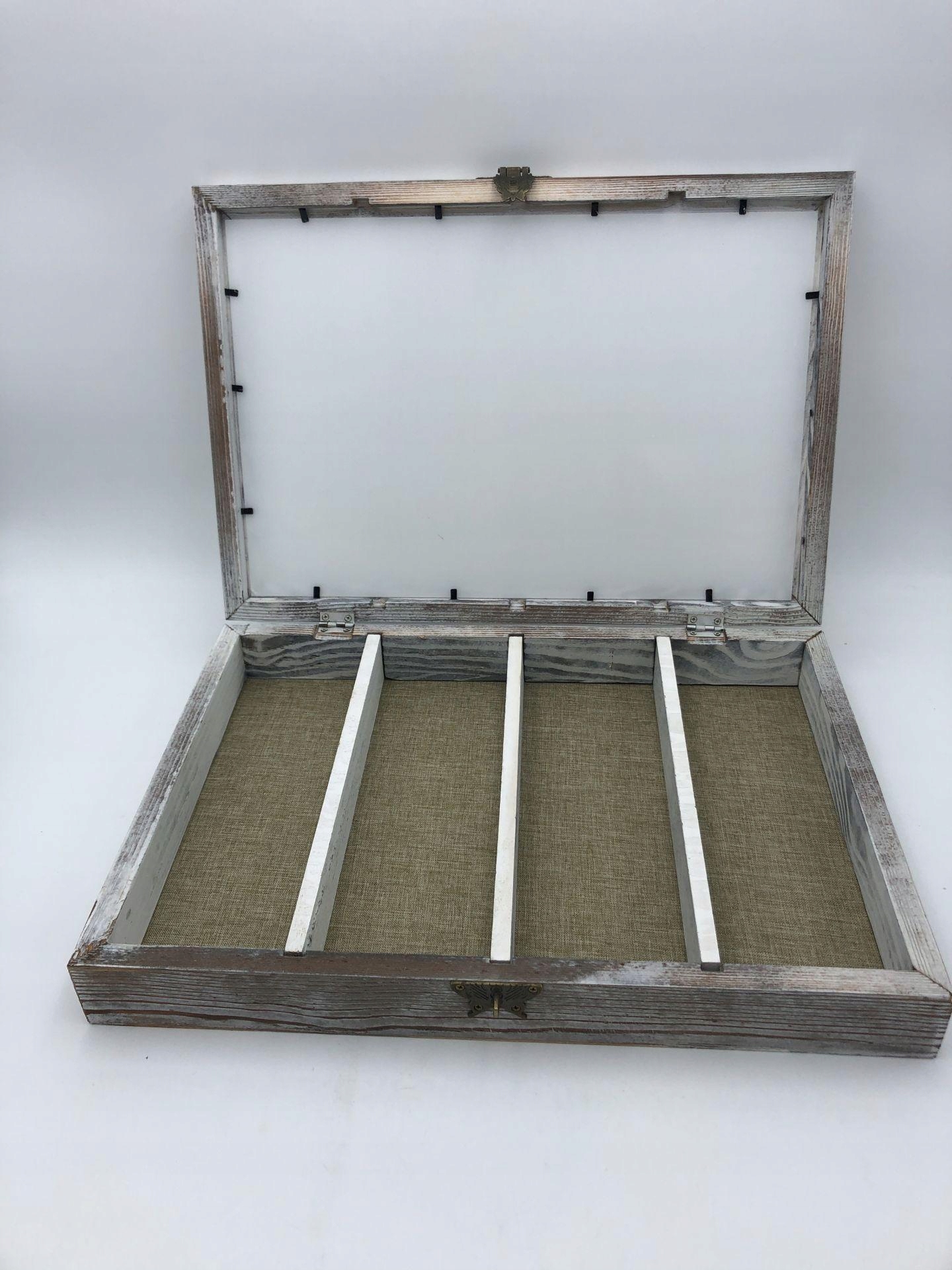 Съемные полки. Мы подготовили 3 съемных полок, где вы можете хранить сувениры в разных размерах. Две полки дают глубокий дисплей три небольших отсека, все с размерами 9,4 х 21,8 х 3,6 см. При необходимости вы можете удалить эти небольшие полки, и после удаления обеих полков емкость 12 дюймов x 8,5 дюйма x 1,4 дюйма позволяет отображать более крупные элементы.