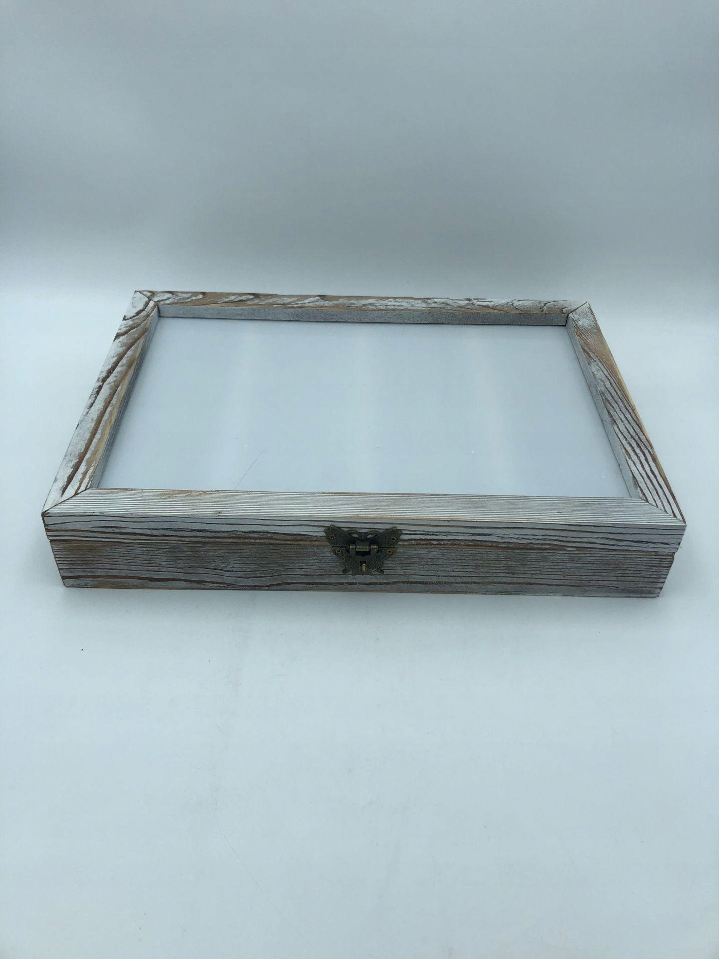 Белый деревянный витрина для сувениров и фотографий, чтобы повесить на стену