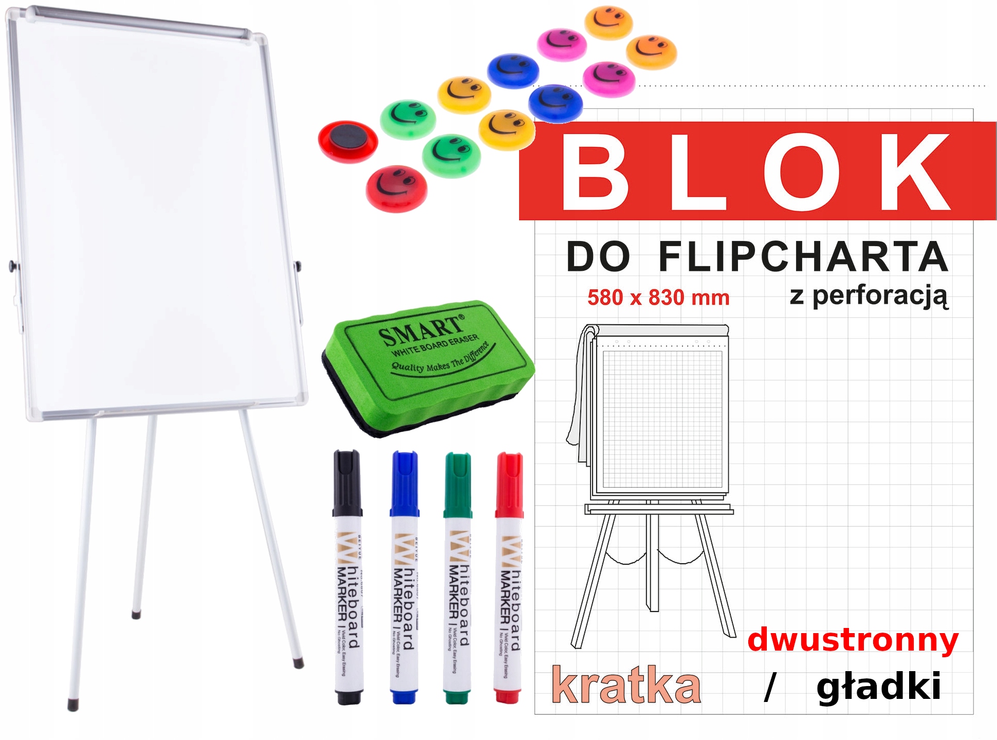 Білий ФЛІПЧАРТ + ПАПІР Губка А1 МАРКЕРИ МАГНІТИ