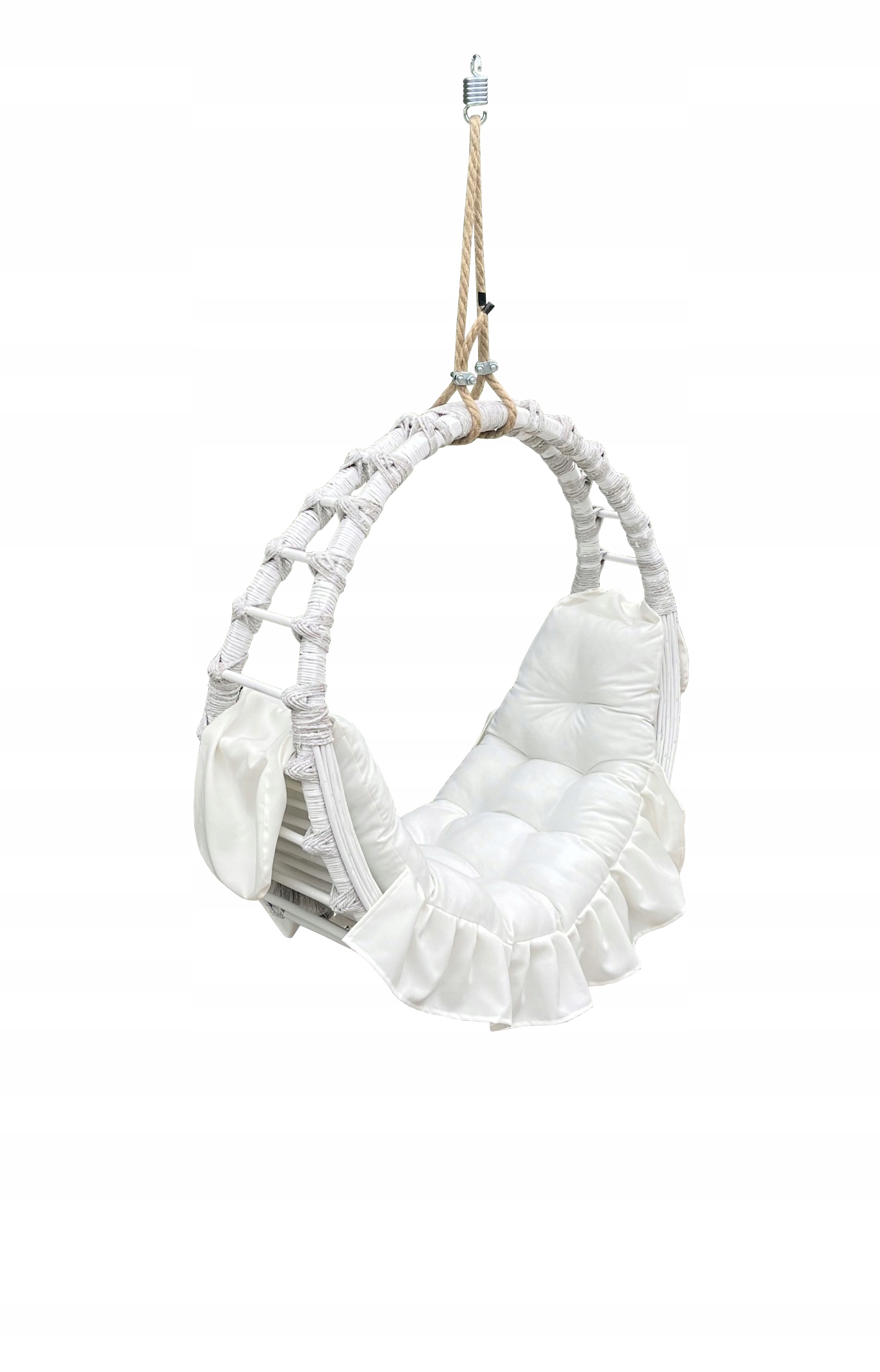 Гамак круглой формы массивен и добротно изготовлен из высококачественного польского плетения, а главное, с использованием специализированной столярной арматуры и элементов конструкционной стали отличного качества. . Гарантия очень хорошего качества. Получение белого цвета гамака за счет использования специальной экологической краски предотвращает сколы внешней поверхности кресла. Весь предмет мебели обтянут джутовой веревкой, которая дополнительно укрепляется в процессе лакировки, чтобы не повредиться при активной эксплуатации изделия. Гамак можно разместить дома или на улице, в саду среди зелени, в беседке или на балконе. Его можно повесить/прикрепить на потолок, балку и любым другим подобным способом. В комплект гамака входит удобная подушка, повторяющая его форму. Если покупатель желает выбрать другой цвет или рисунок подушки, ознакомьтесь с другими нашими предложениями по продаже. Также у нас есть гамаки разных цветов.