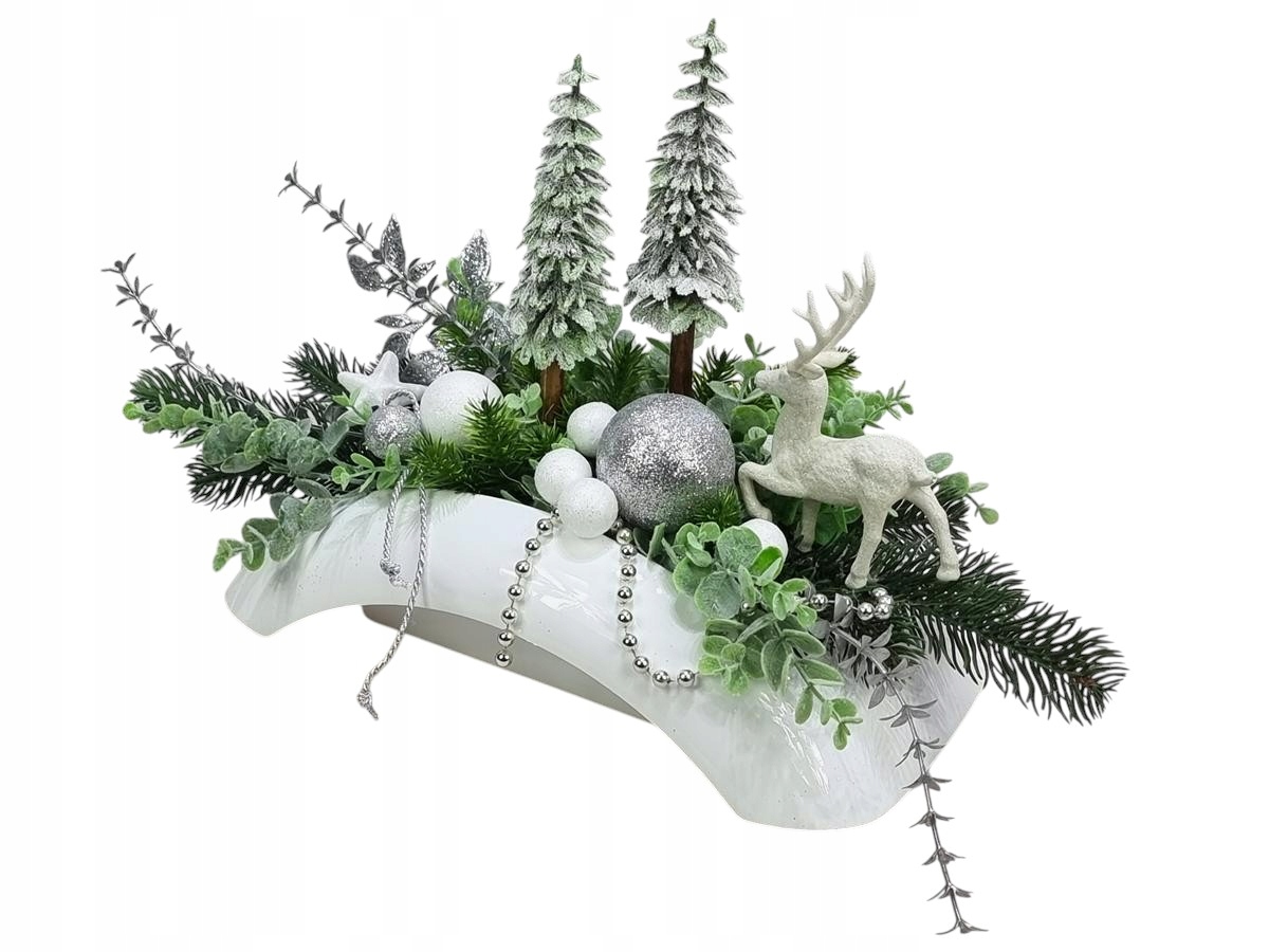 РОЖДЕСТВЕНСКИЕ ЕЛКИ ШАРЫ ОЛЕНИ белые (223.30) Украшение могильной композиции Рождественское кладбище РОЖДЕСТВО