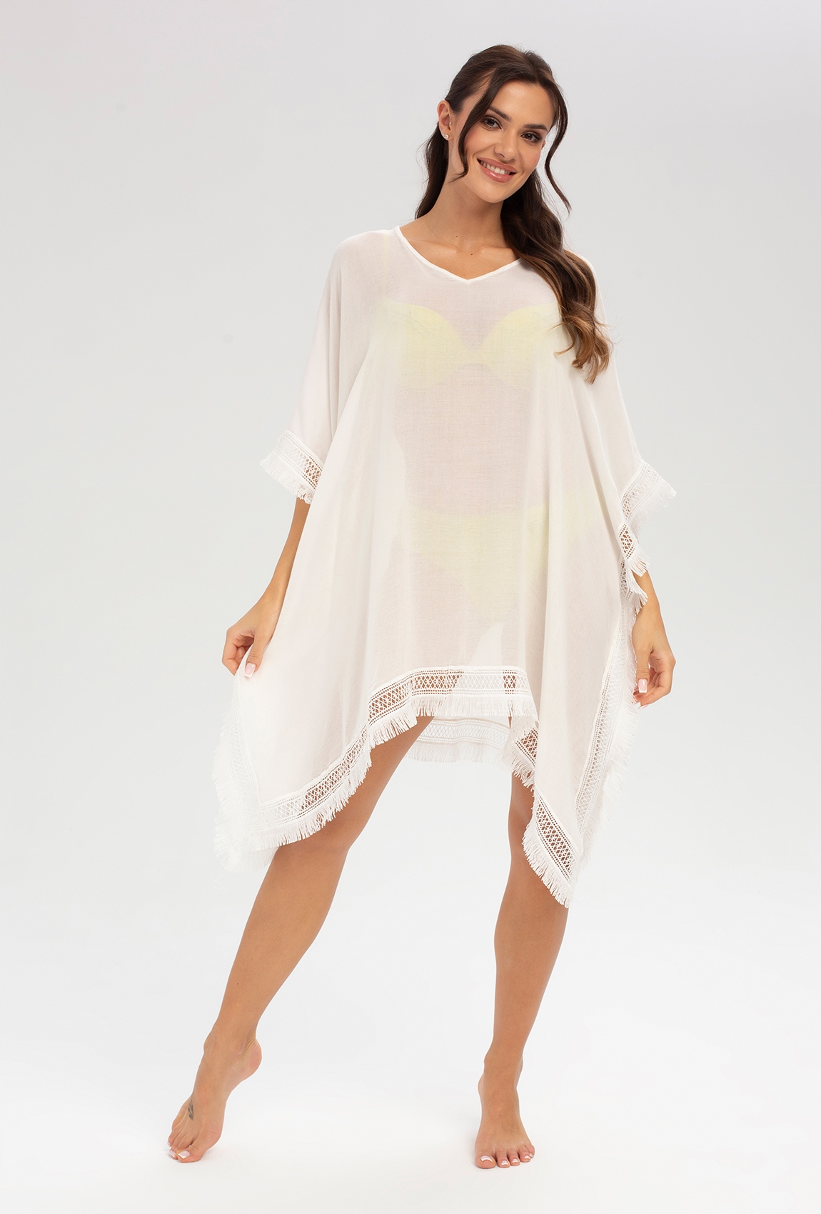 Вы ищете накидку, который дополнит ваш праздник и не займет много места в вашем багаже? Пляж Pareo с Viscose Indiana Gatta станет выстрелом в магазинах десять! Он легкий, воздушный, и от других моделей они отличаются деталями - лента с открытой работой и полосы, относящиеся к стилю Бохо, который доминирует в тенденциях весной и летом 2025 года. Наша пляжная пласть ждет вас для Gatta Online в одном, универсальном размере и в двух цветах - белый и черный. Кто из них пойдет в вашу корзину для покупок?
