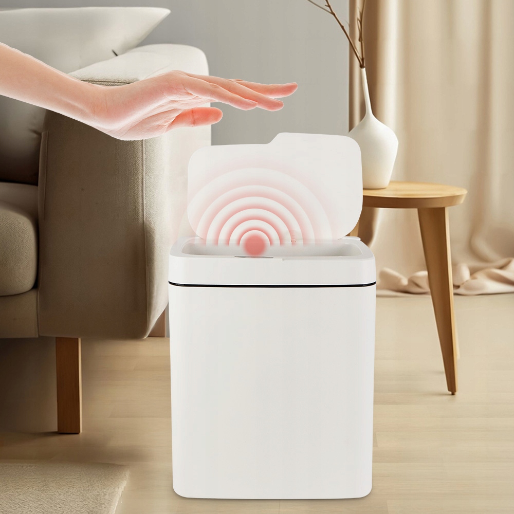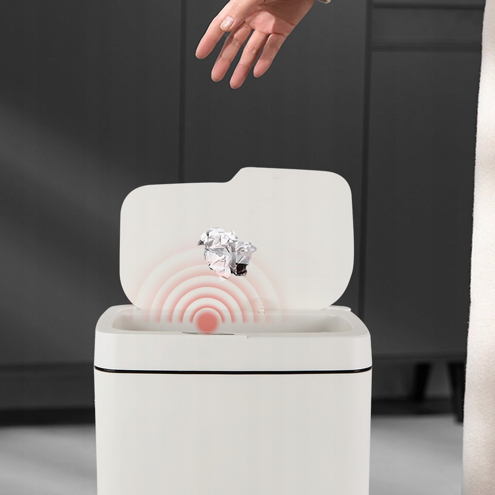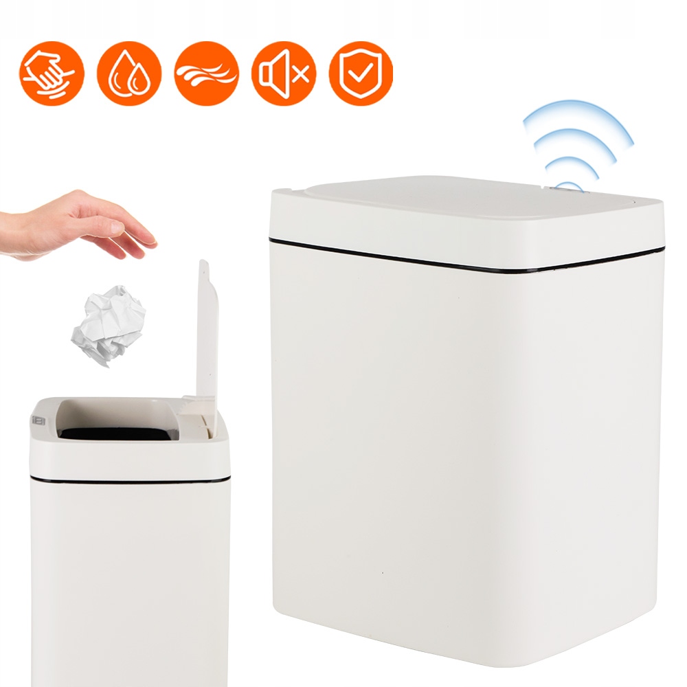 Белая мусорная мусорная корзина с датчиком, автоматической крышкой, внутренней корзиной