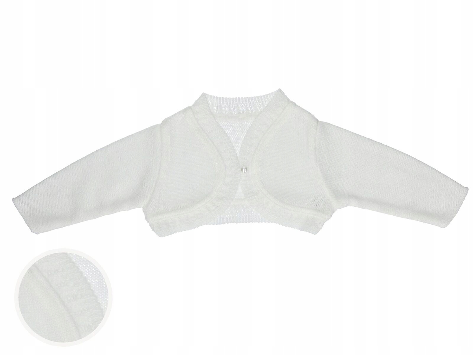 Красивое, элегантное болеро с вязаным рюшем, идеально подходит для Крещения и других случаев.