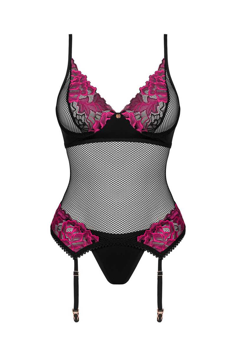 Позаботьтесь о собственном комфорте и не отказывайтесь от соблазнительного внешнего вида. Корсет Rosenty бережно окутает ваше тело прозрачной сеткой и подчеркнет фигуру цветочным узором. Подумайте, как красиво вы будете выглядеть, если дополните эту укладку любимыми чулками.