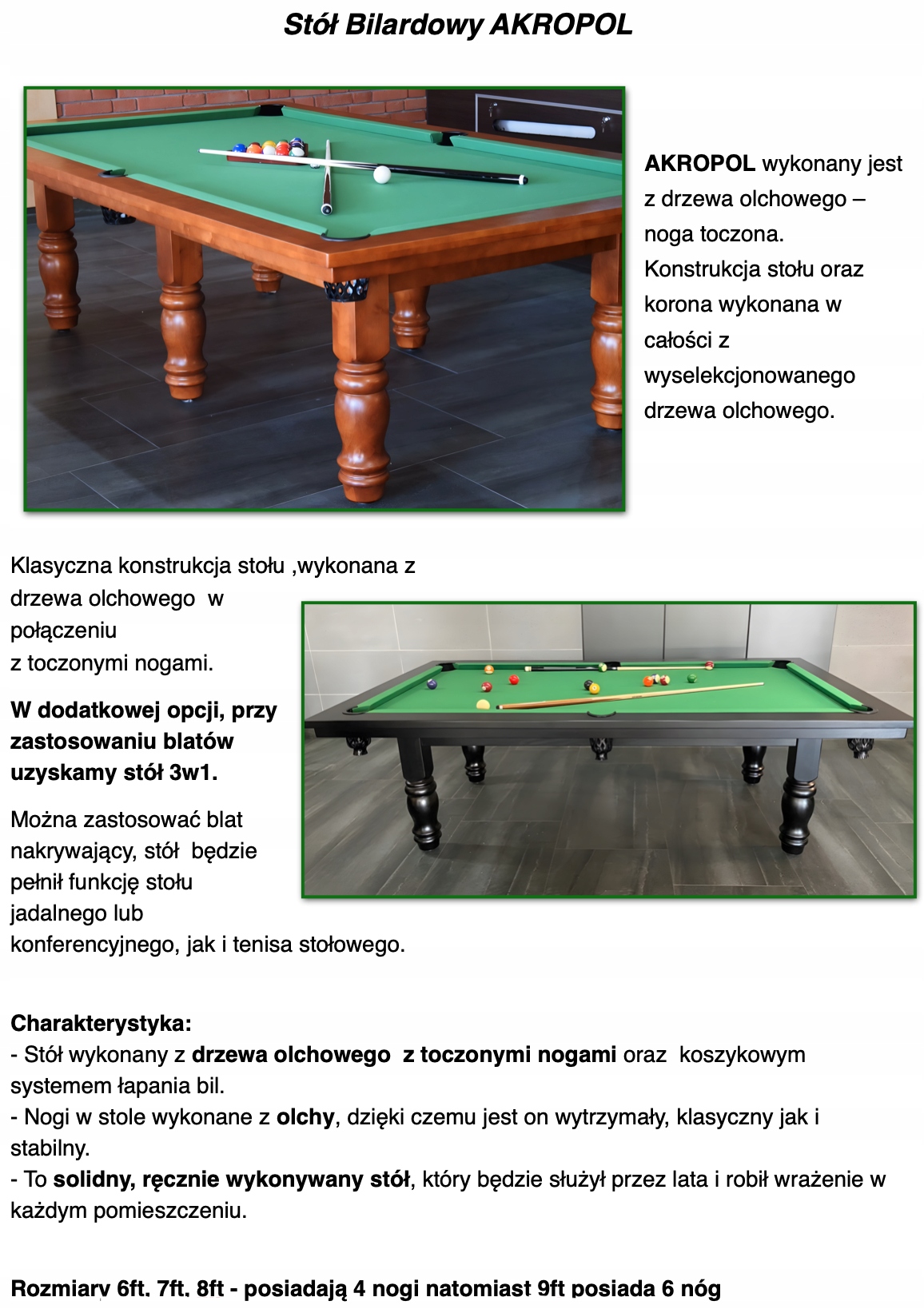 Просматривая «АКРОПОЛЬ Бильярдный стол - Массив ольхи - 7 футов», вы можете быть уверены, что данный товар из каталога «Наборы кухонной мебели» будет доставлен из Польши и проверен на целостность. В цене товара, указанной на сайте, учтена доставка из Польши. Внимание!!! Товары для Евросоюза, согласно законодательству стран Евросоюза, могут отличаться упаковкой или наполнением.