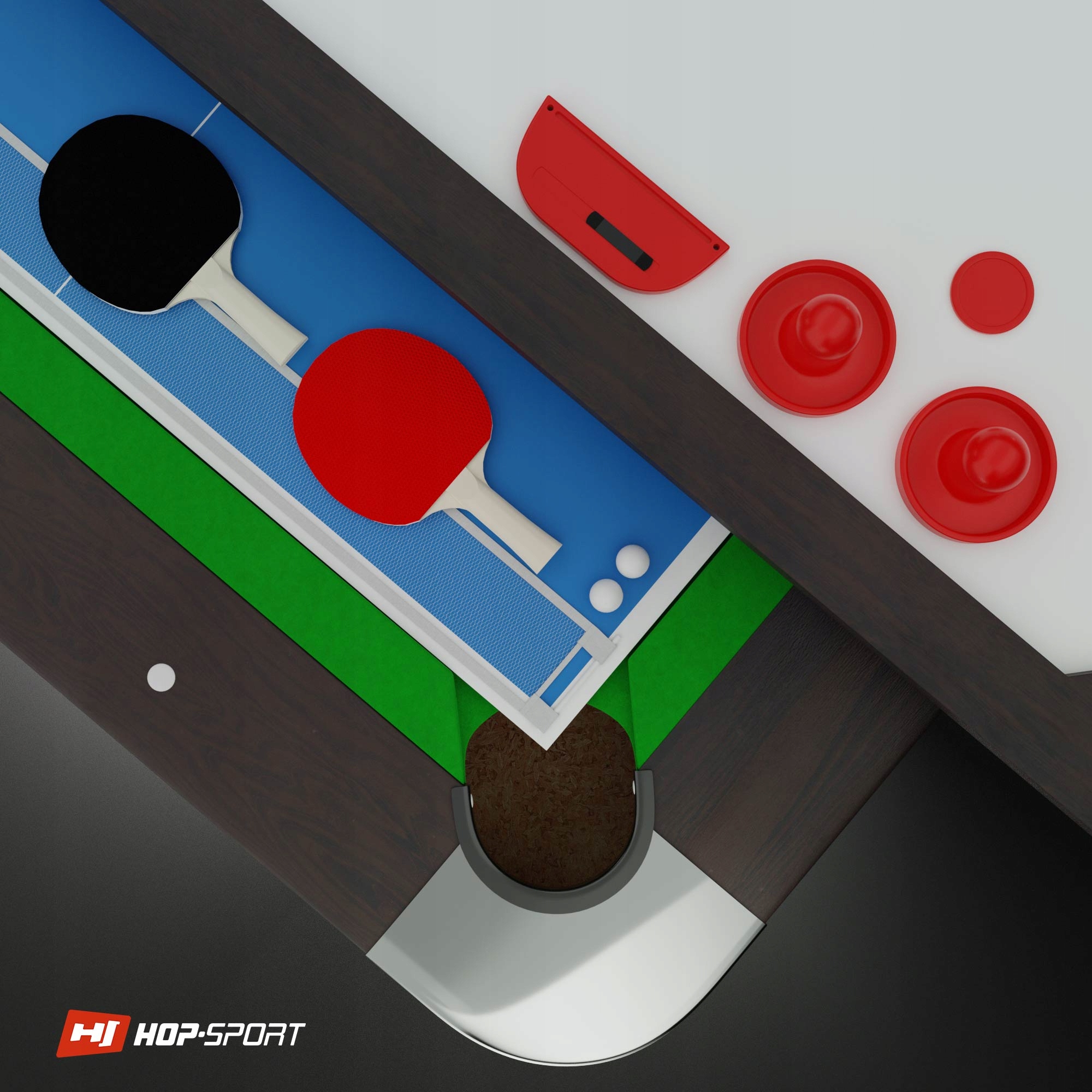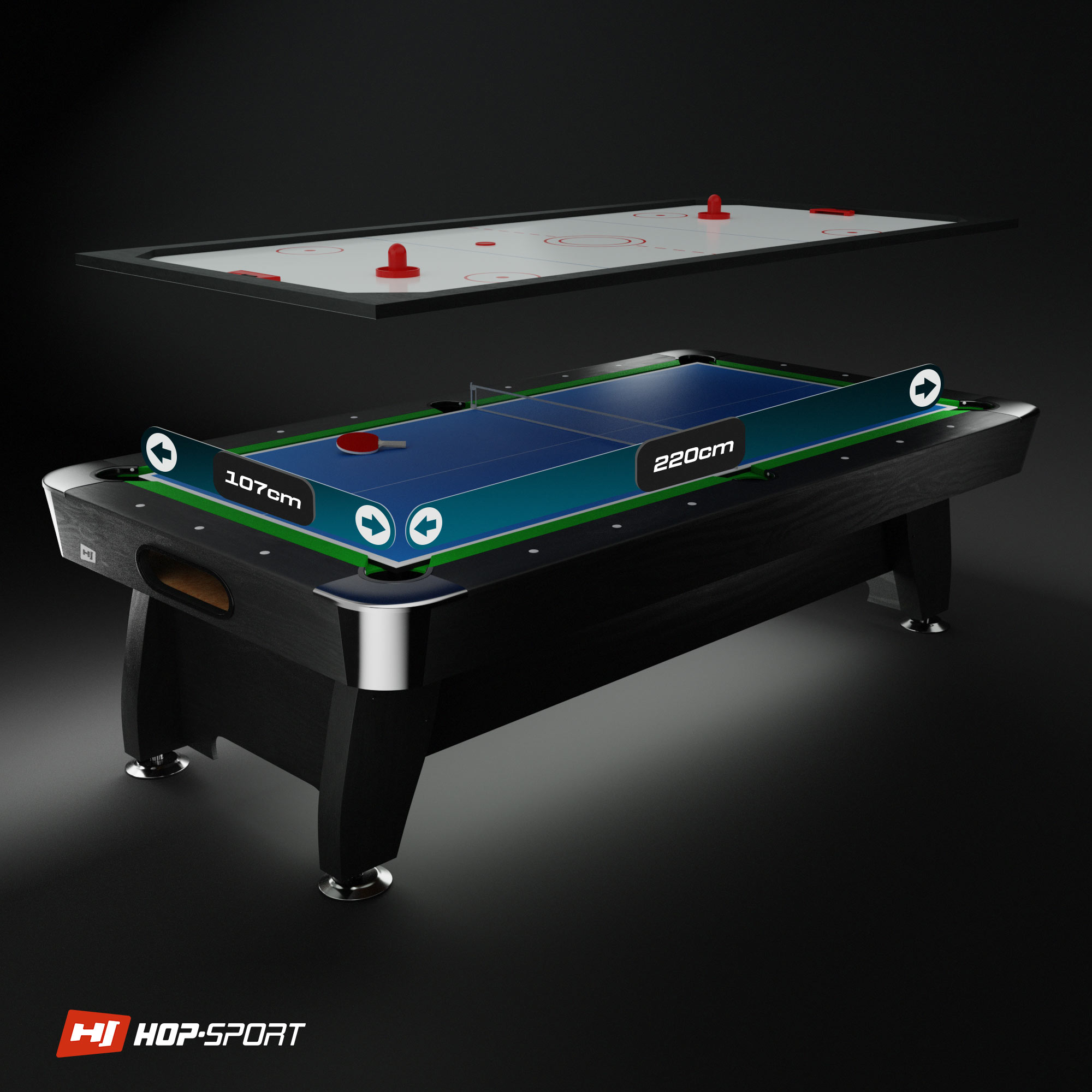 Бильярдный стол с проточной системой из 8-футовых спенсеров Hop-Sport в сочетании с двухсторонним покрытием для настольного тенниса и аэрохоккея позволит вам получать удовольствие от игры, сохраняя при этом функциональность вашей столовой.