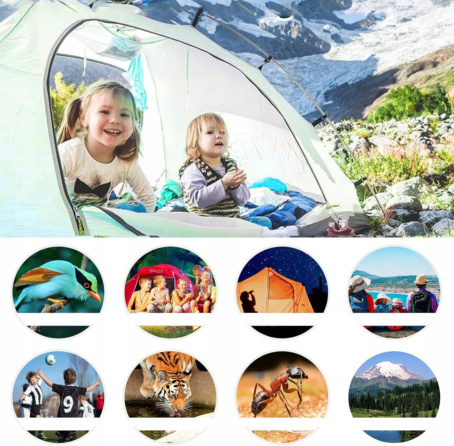 - Дети могут учиться и открывать для себя идеальные места для приключений на свежем воздухе, таких как походный комплект, кемпинг, наблюдение за птицами, а также мероприятия, мероприятия спорт.