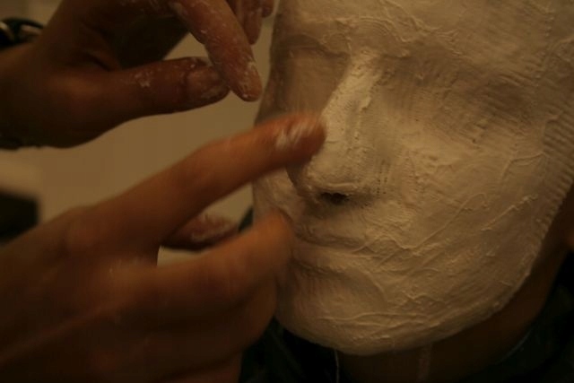 Смажьте оливковым маслом часть тела, предназначенную для отрыжки. Разрежьте бинт на небольшие квадратные кусочки. Медленно и осторожно накладываем на размазанное лицо небольшие кусочки гипсовой повязки. Пальцами подгоните их под лицо. Конечно, перед нанесением кусочки мы замачиваем в воде. Помните, что нашей модели необходимо дышать, поэтому оставим ей отверстия для носа. Теперь модель может лечь и почувствовать нежное тепло на своем лице. Когда пластырь застынет, достаточно улыбнуться, напрячь мышцы лица, и маска снимется сама. Затем вы можете раскрасить его или сделать дополнительные отпечатки изнутри, например, из мокрых листьев.