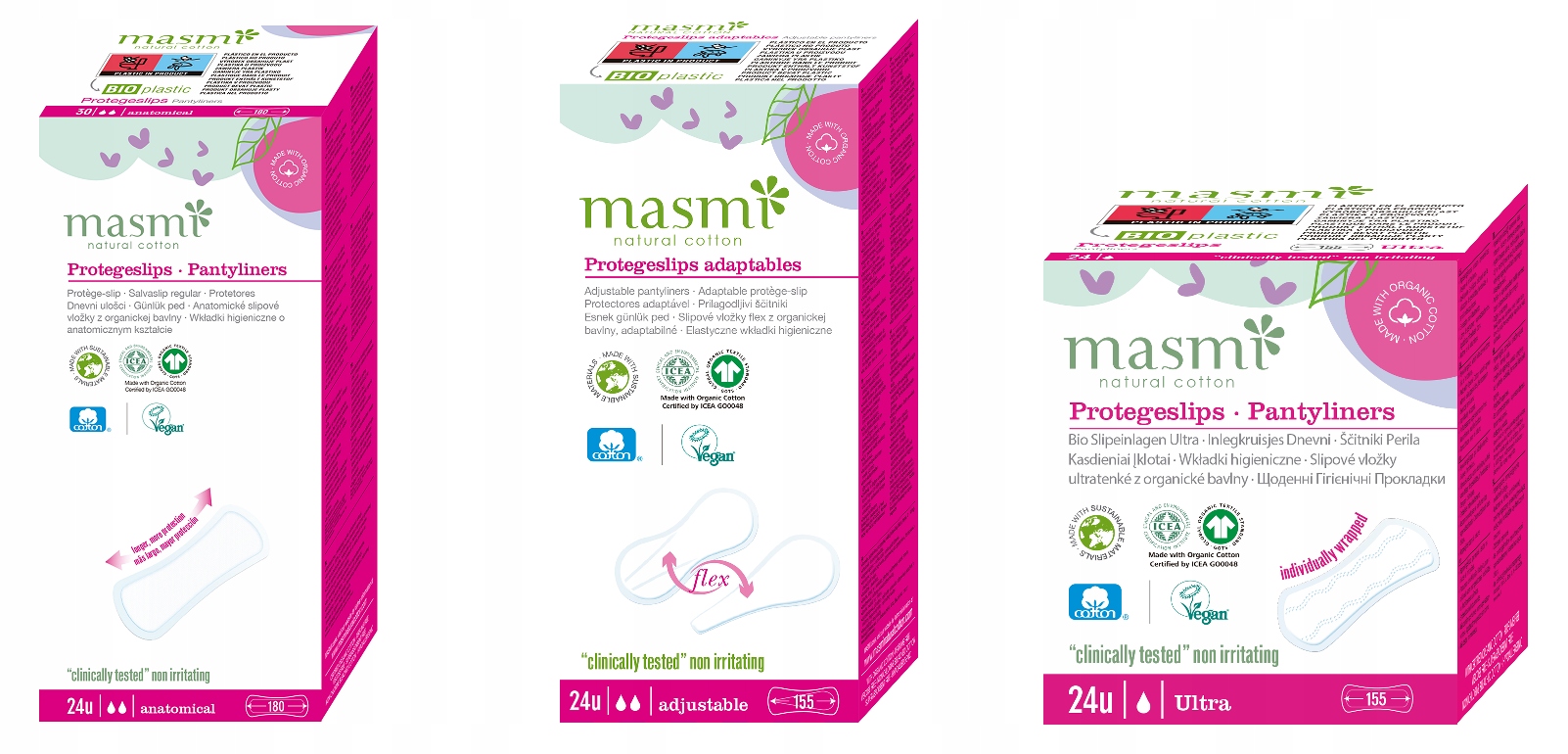 Ватные прокладкиMasmi являются наиболее впитывающимииз натуральных гигиенических прокладок, доступных на рынке.