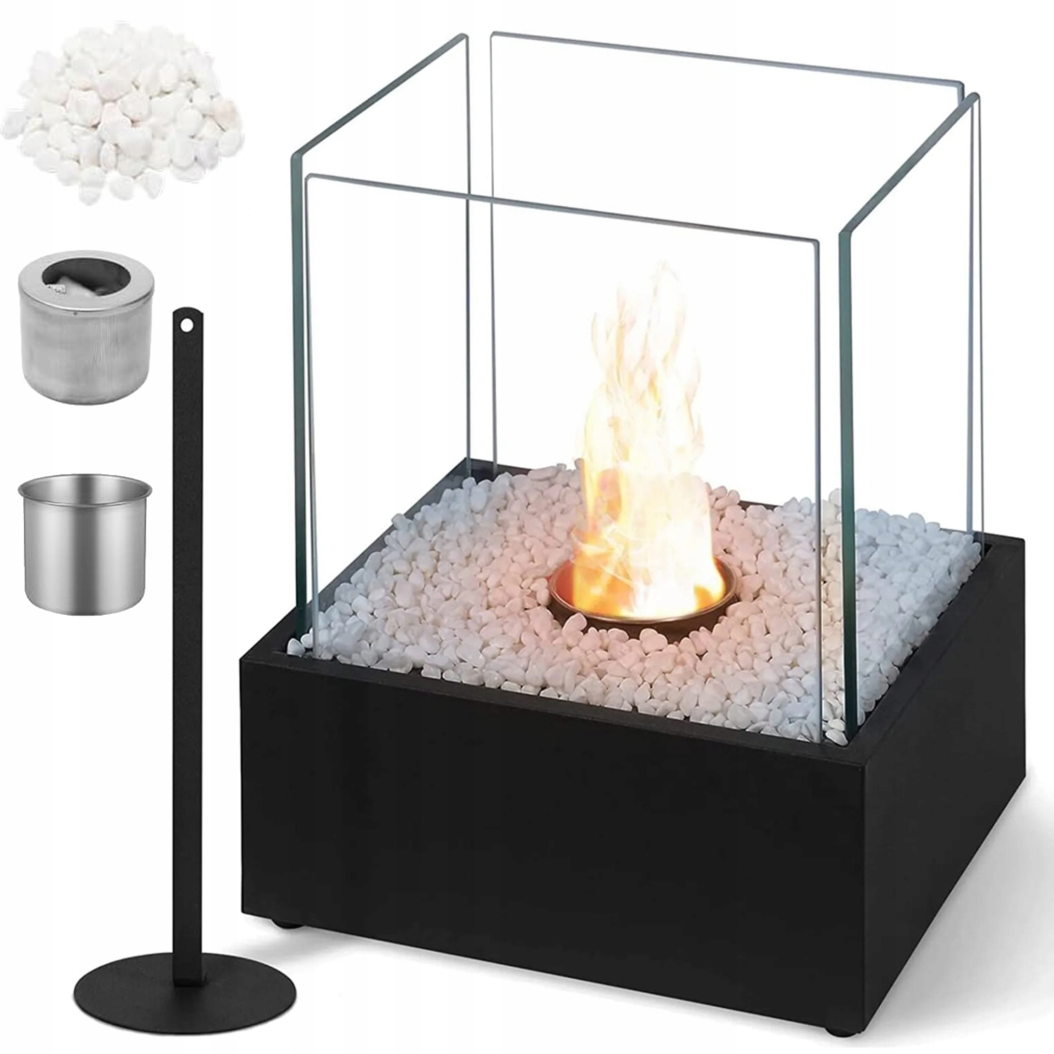 - - 🔥Настольный камин: Материалы: Закаленное стекло, нержавеющая сталь; Цвет: Черный; Размеры: 24,5 х 20,5 х 28,7 см. В комплекте: основание, стеклянная крышка, фитиль, спиртовая вставка, огнеупорный камень, противопожарная перегородка, инструкция (без спирта).
