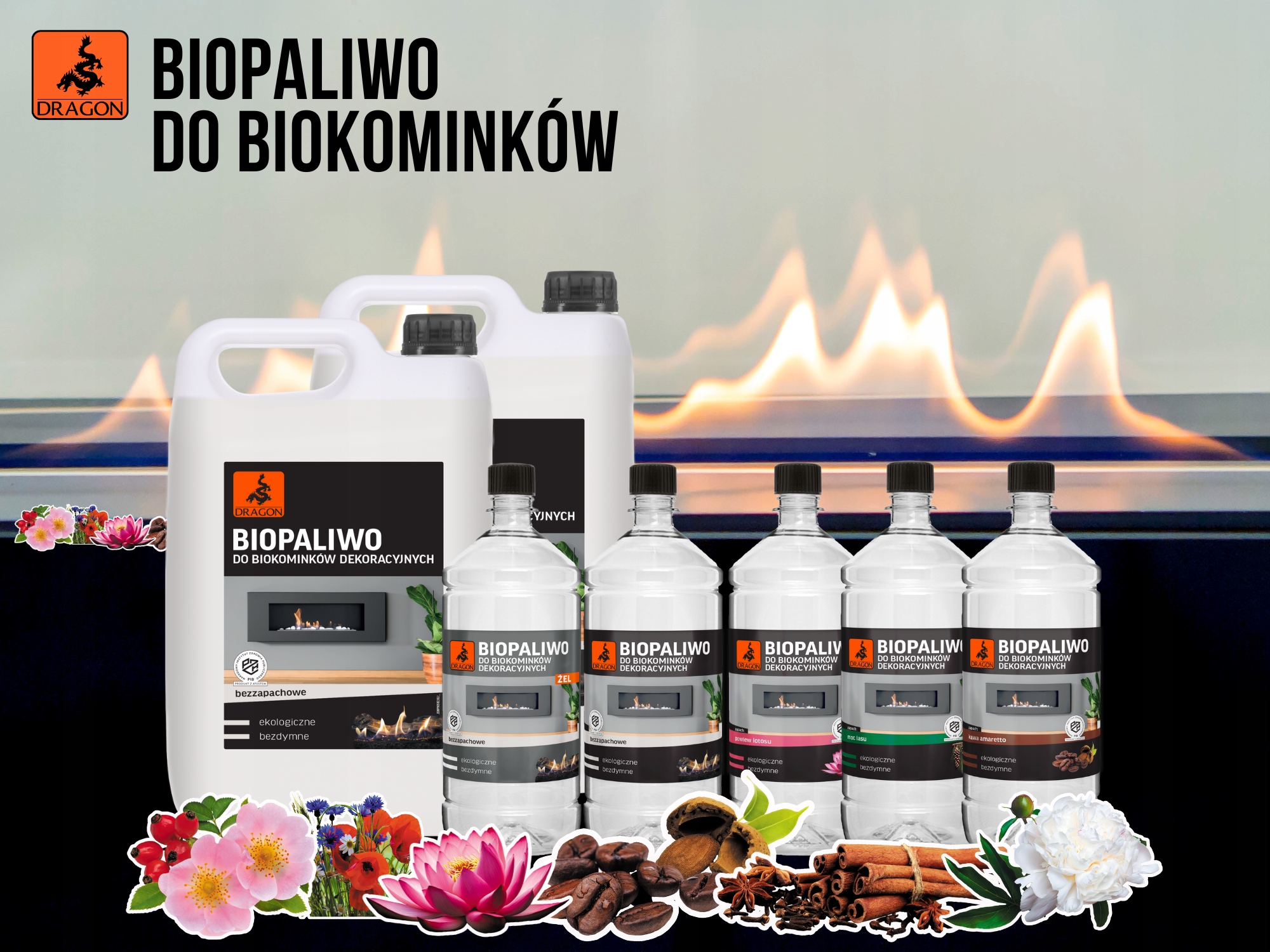 Биотопливо для биокаминов, аромат букета белых цветов, 1л ДРАКОН