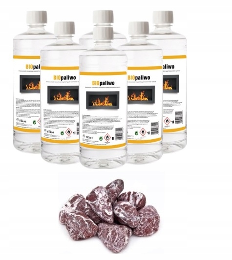 Стартовый набор биокамина - 6 штук биотоплива в бутылках по 1 л + БЕСПЛАТНАЯ красная галька