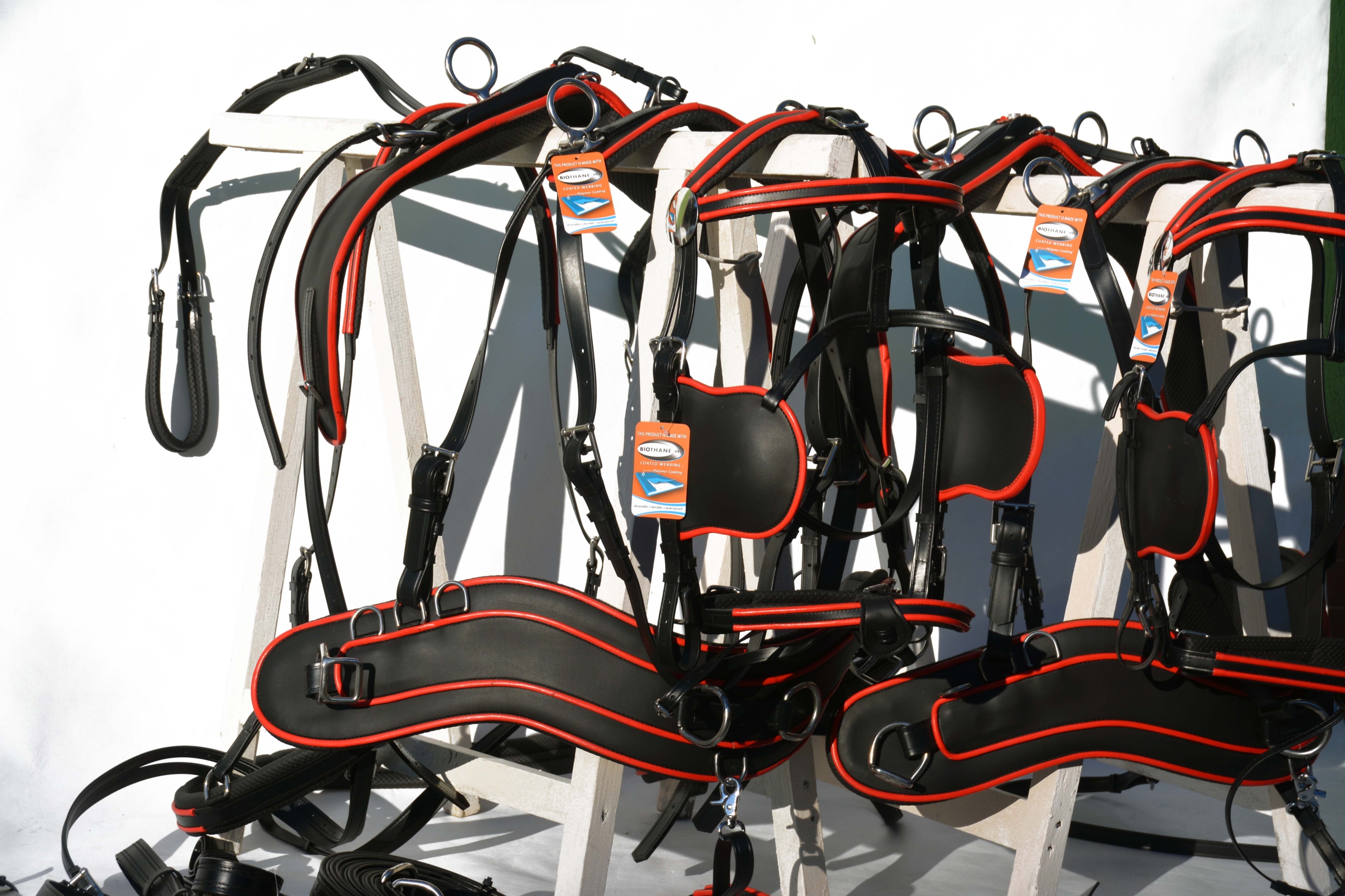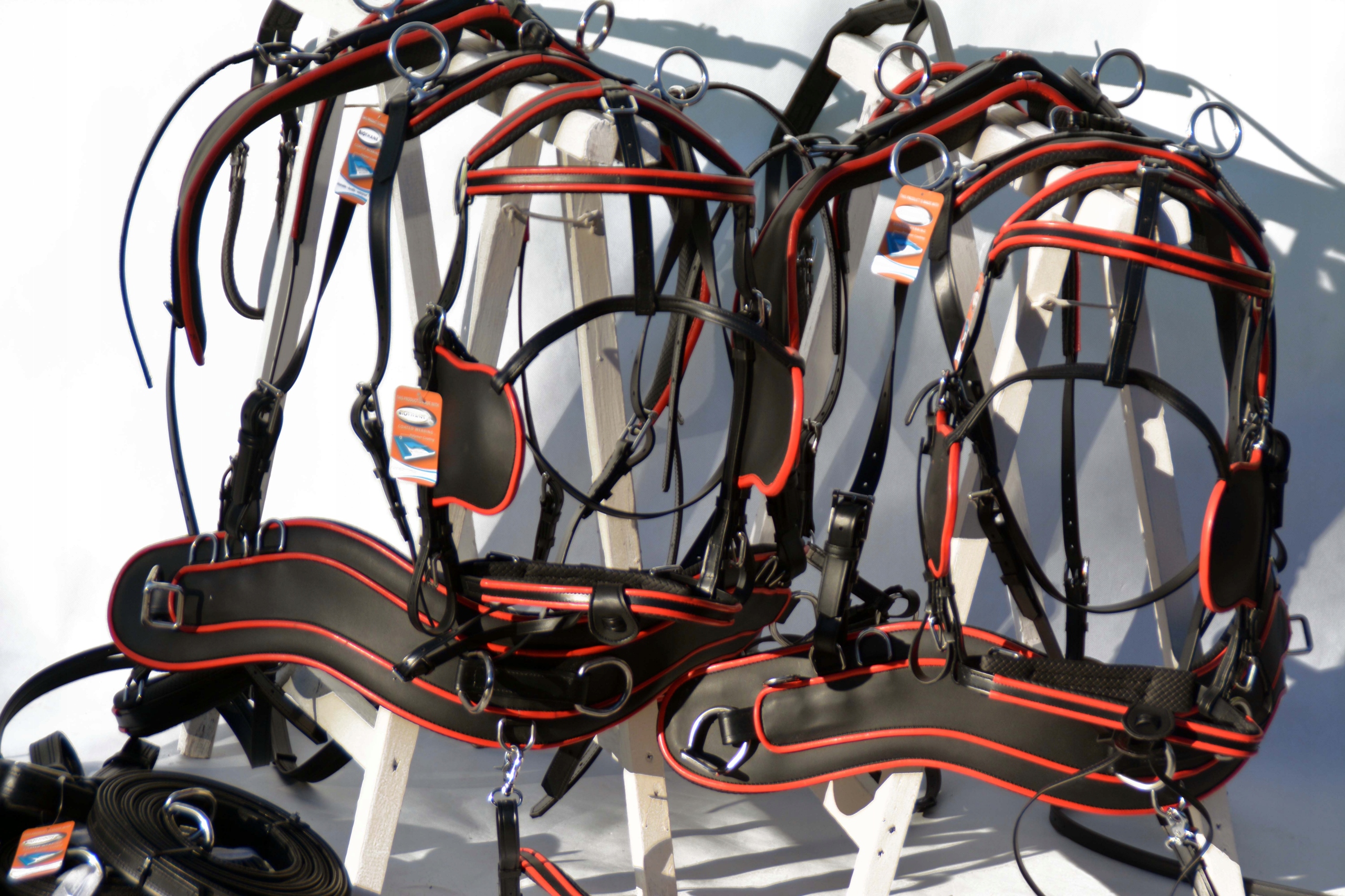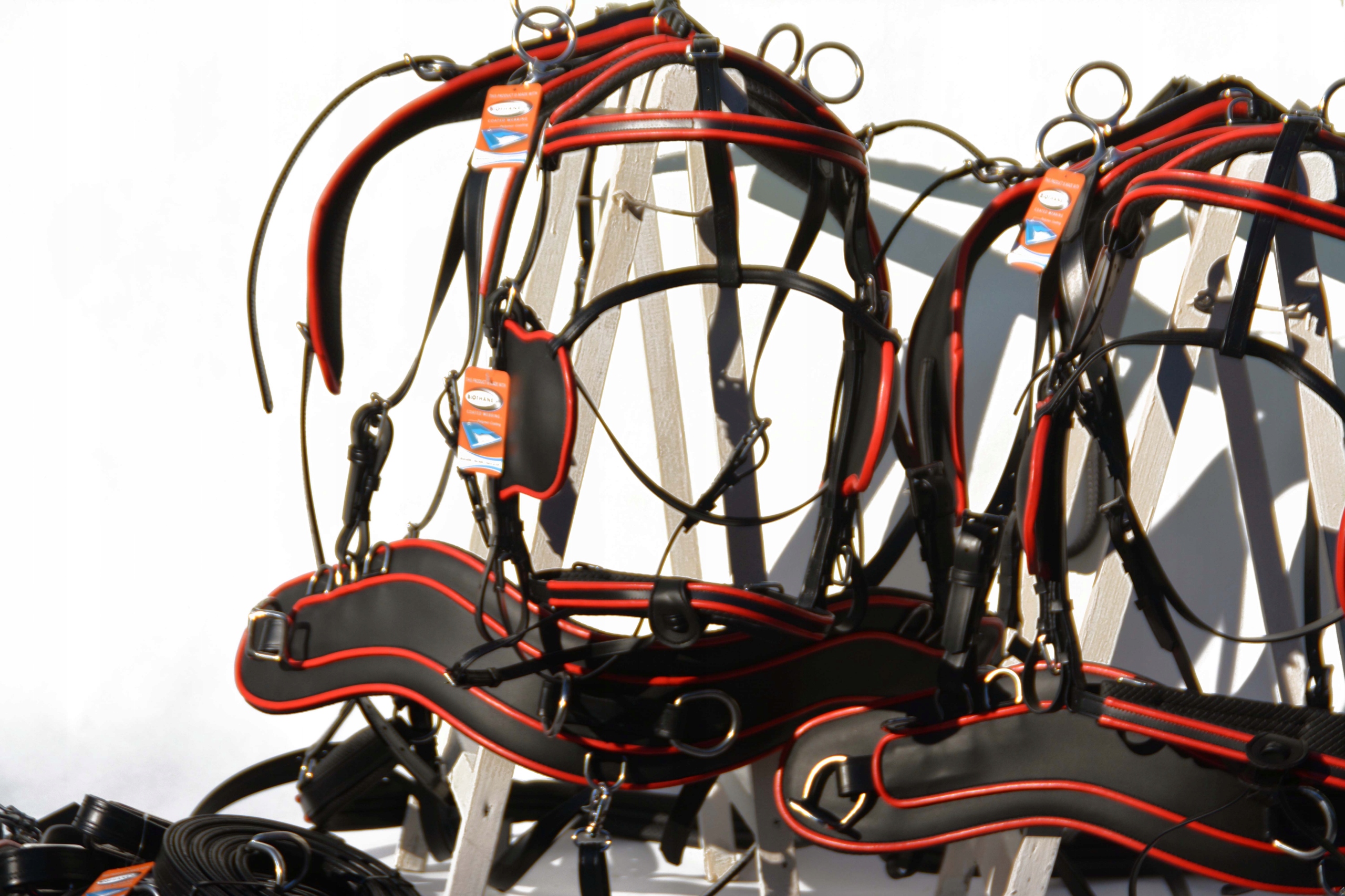 Упряжь для пары лошадей, РАЗМЕР. COB - БИОТАН - ИЗГОТОВЛЕН ИЗ СИНТЕТИЧЕСКОГО АРМИРОВАННОГО БИОТАНОВОГО МАТЕРИАЛА ПРОИЗВОДСТВА США. ОЧЕНЬ ЛЕГКИЙ И ПРОЧНЫЙ, УСТОЙЧИВЫЙ К ПОТУ И ГРЯЗЯМ, ОБСЛУЖИВАНИЕ ПРОВОДИТСЯ ПРОТОЧНОЙ ВОДОЙ, МОЙКОЙ ПОД ДАВЛЕНИЕМ ИЛИ ОБЫЧНЫМ КРАНОМ. .БИОТЕН ВДВОЕ ПРОЧНЕЕ КОЖИ. АНАТОМИЧЕСКИ ПРОФИЛИРОВАННАЯ ГРУДЬ, ОТЛИЧНАЯ РАБОТА. ФИТИНГИ ИЗ БЛАГОРОДНОЙ КИСЛОТНОЙ СТАЛИ. МЫ ПРЕДЛАГАЕМ МНОГИЕ МОДЕЛИ И АКСЕССУАРЫ ДЛЯ РЕГУЛЯТОРОВ. ОТЛИЧНАЯ ЦЕНА