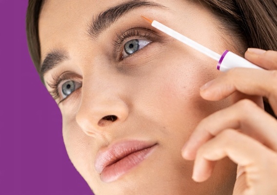 - (после снятия макияжа и умывания водой) нанесите небольшое количество препарата одним движением аппликатора (не повторять) непосредственно у основания ресниц (так же, как подводка для глаз).