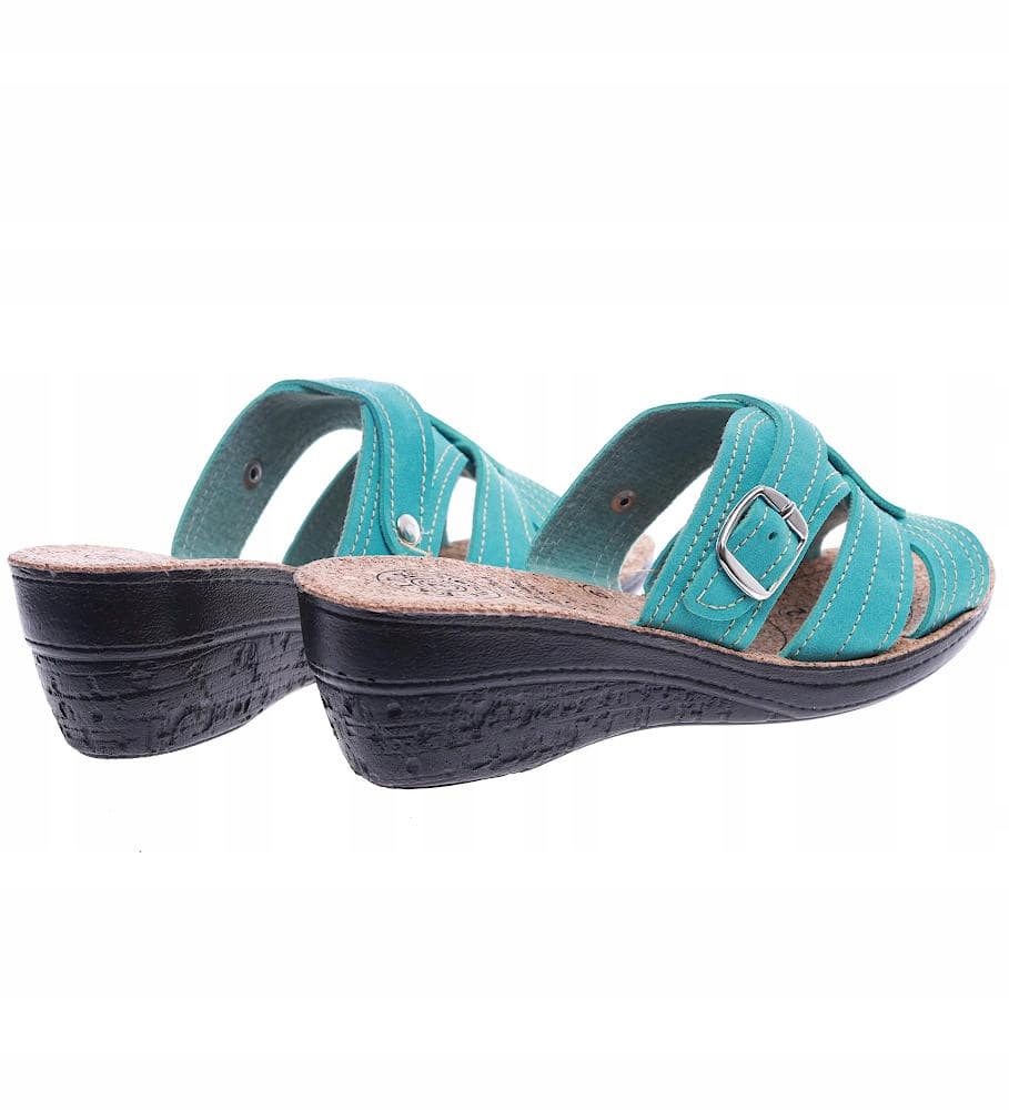 БИРЮЗОВЫЕ ТАПОЧКИ НА НИЗКОЙ ТЕЛЕЖКЕ 14309