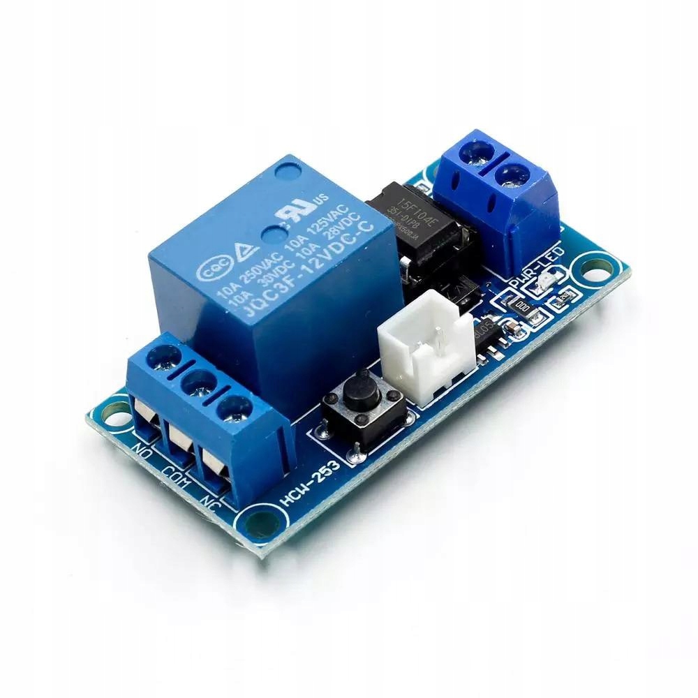 Бистабильный релейный модуль с питанием 12 В. Бистабильное реле меняет свое состояние на противоположное каждый раз при замыкании контактов модуля или нажатии кнопки. Благодаря этому нам не нужно постоянно подавать напряжение на модуль для поддержания заданного состояния, достаточно короткого импульса.
