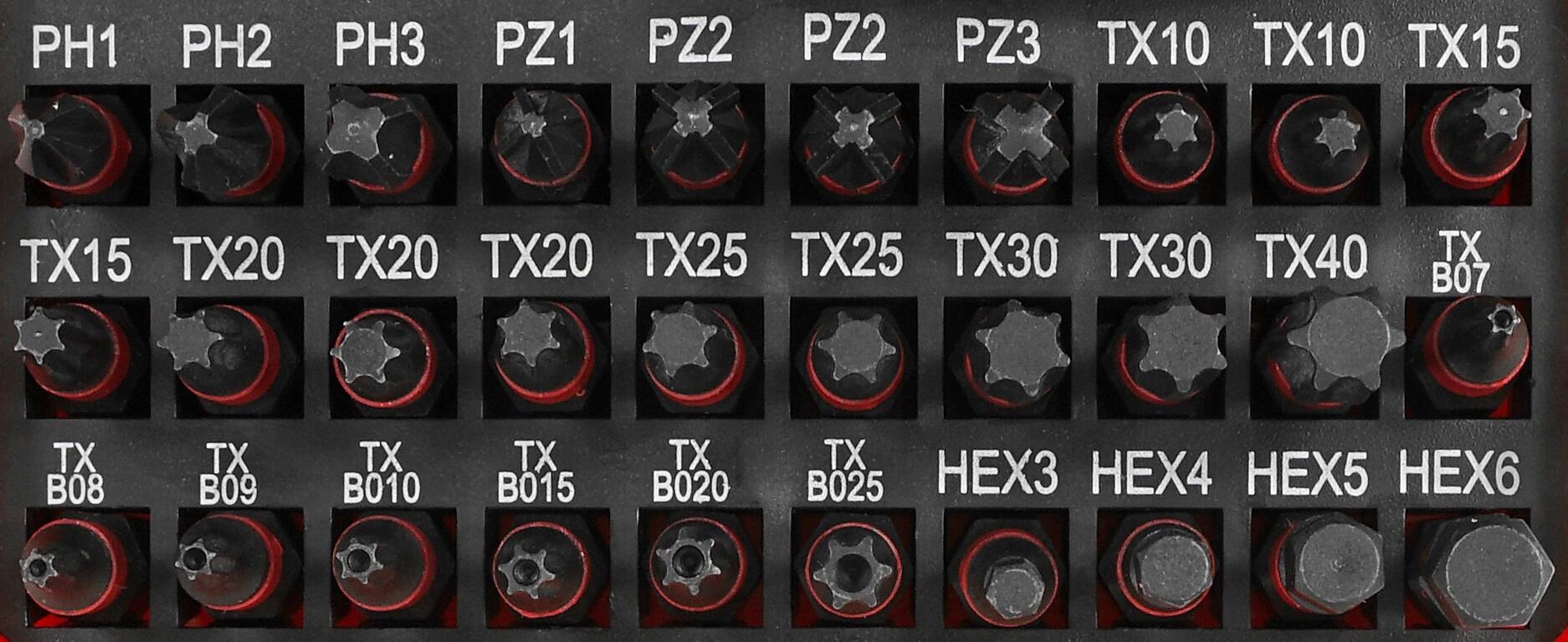 - bit S2: PH1, 2xPH2, PH3, PZ1, PZ1, PZ1, PZ1, PZ1, PZ1, PZ1, PZ3, 2XTX10, 2xtx15, 2xtx20, 2xtx25, 2xtx30, TX40, Txb07, txb08, txb09, txb10, txb15, txb20, txb25, hex3, hex4, hex5, hex6