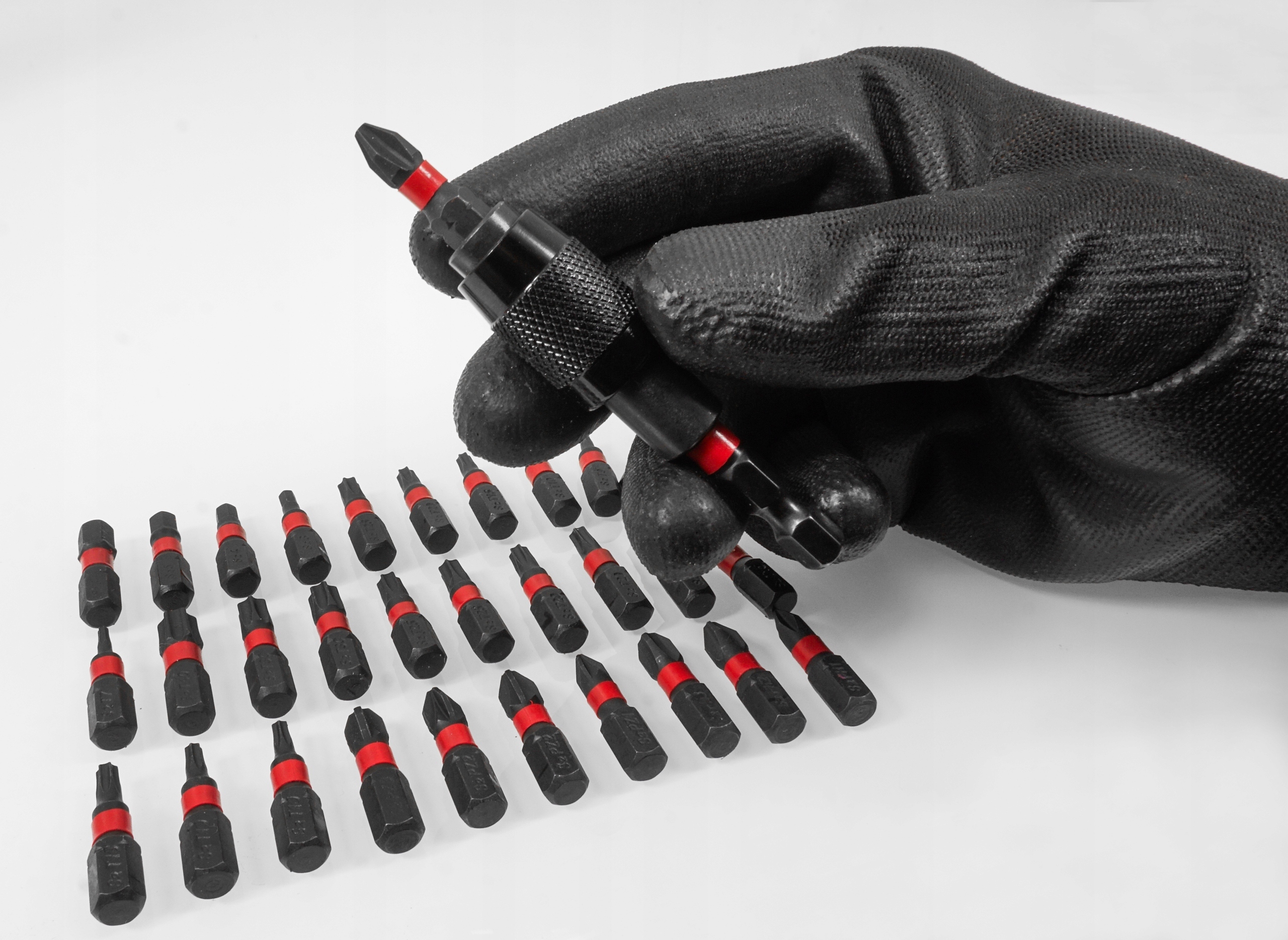 Биты были изготовлены из хромированной стали (CR-V). Биты имеют быструю магнитную ручку, которая улучшает замену битов.