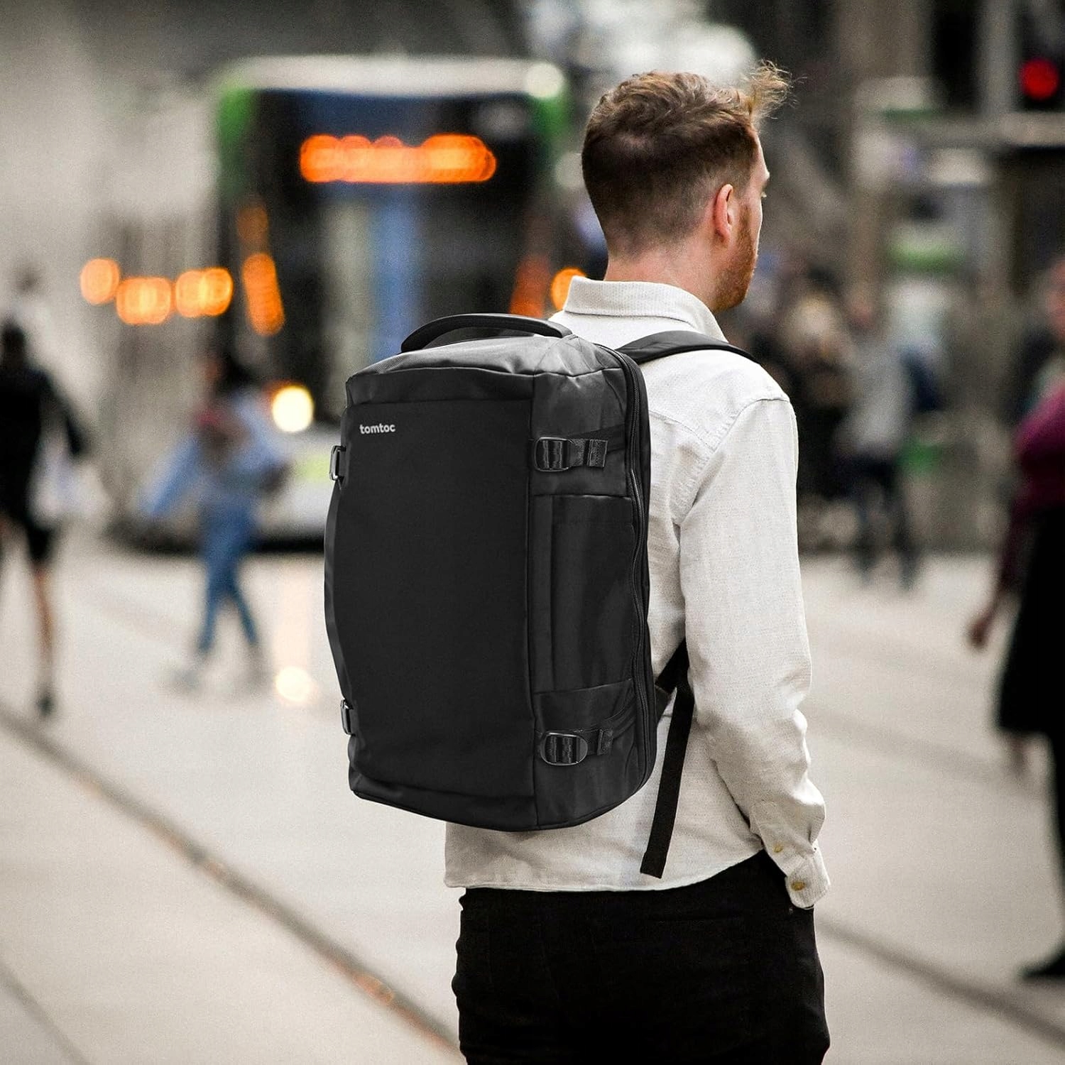Tomtoc разработал этот рюкзак в качестве ручного багажа, чтобы удовлетворить все требования короткой деловой поездки или семейной поездки.