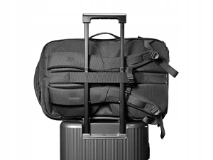 Есть коляска сзади, так что мешок для путешествий может быть прикреплен к ручке багажа.