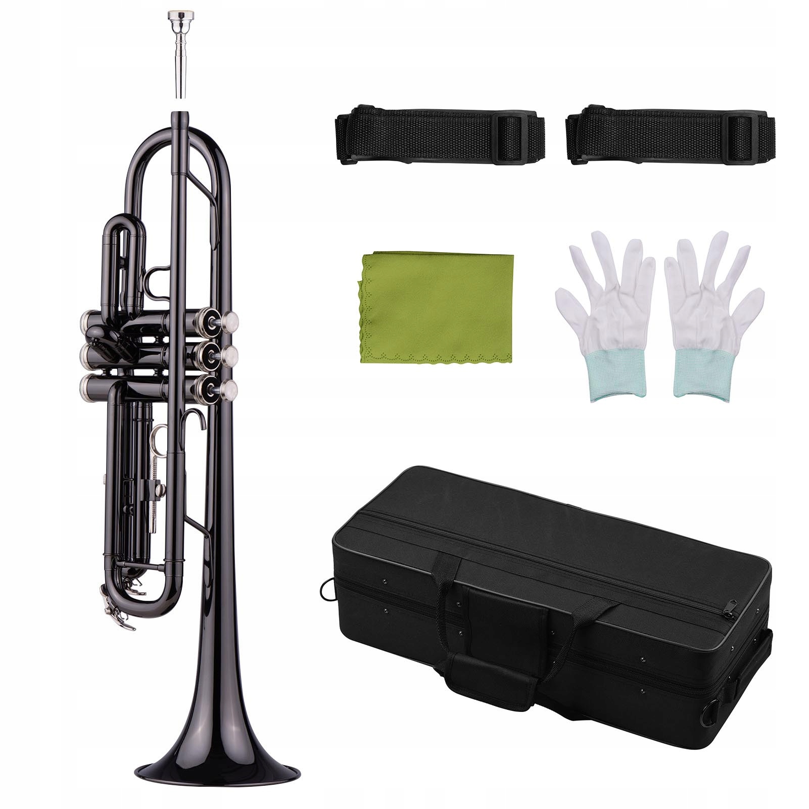 Набор трубы Bb черного цвета с латунным покрытием для начинающих студентов, с жесткими ремнями. Чехол. Мундштук. Перчатки. Ткань для полировки.