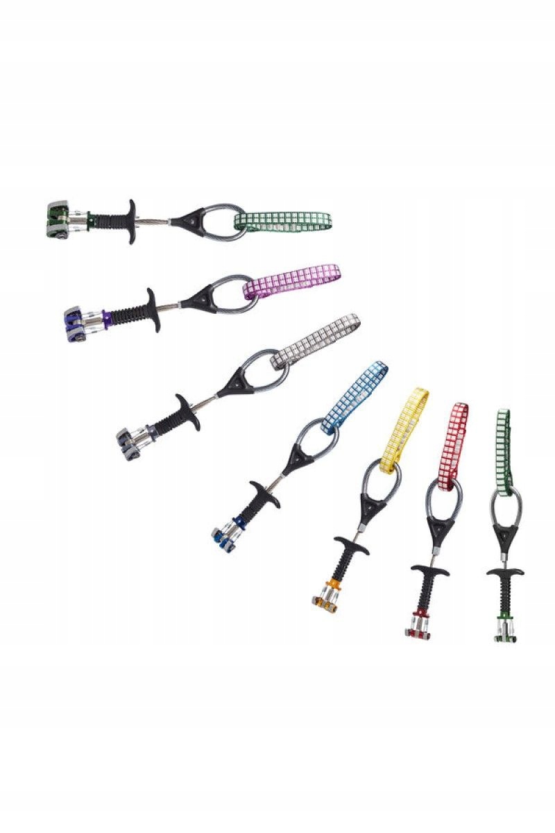 У друга есть лента Dynex уникального цвета, прикрепленная к ручке — для каждого размера она своя. Размер Camalot Z4 0.1 имеет красный цвет для облегчения идентификации в наборе.