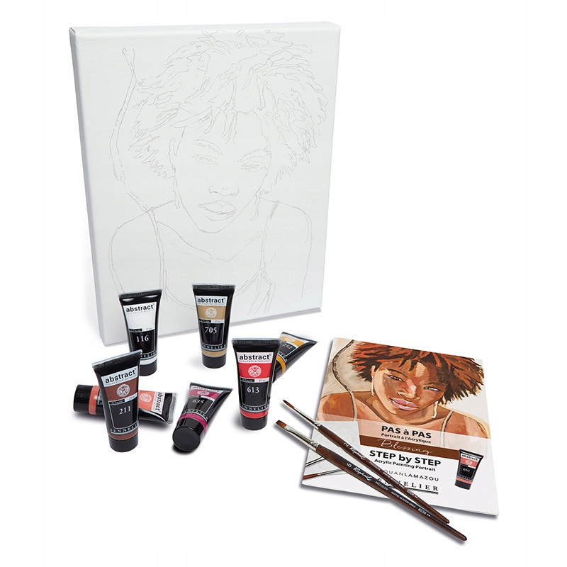 Набор акриловых красок Abstract Sennelier, созданный в сотрудничестве с художником Титуаном Ламазу; Набор позволяет нарисовать женский портрет акриловыми красками. В коробке находится 3D холст с заранее нарисованным эскизом (24×30 см), 7 тюбиков акриловой краски по 21 мл, две кисти и буклет с пошаговой инструкцией.